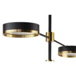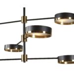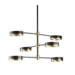 Bring together any space with this marvelous chandelier that will add modern style. Features a black metal frame with six flat cylindrical lamp shades. Arms can be adjusted horizontally for added design versatility. Completed with accenting brass plating.