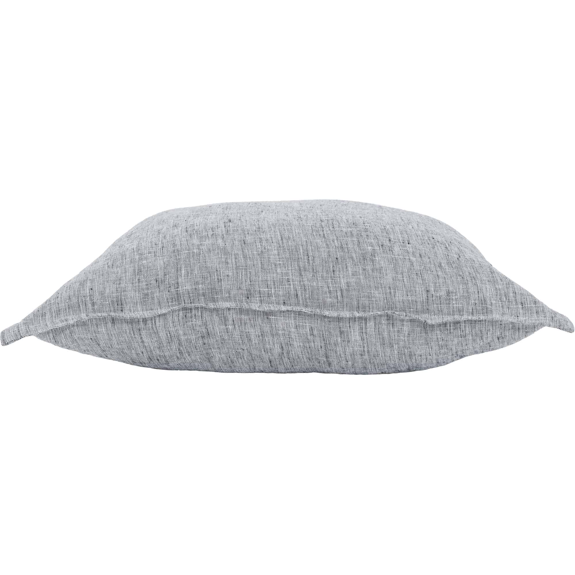 Capable of fitting in any interior, in any arrangement, this throw-pillow holds an endless supply of versatility. Composed of linen with a down feather filling, its 20 by 20-inch build offers durability to take on everyday life not delicacy. Showcasing a subtle blend of navy blue and white it holds a unique hue that feels softer than the traditional dark palette.