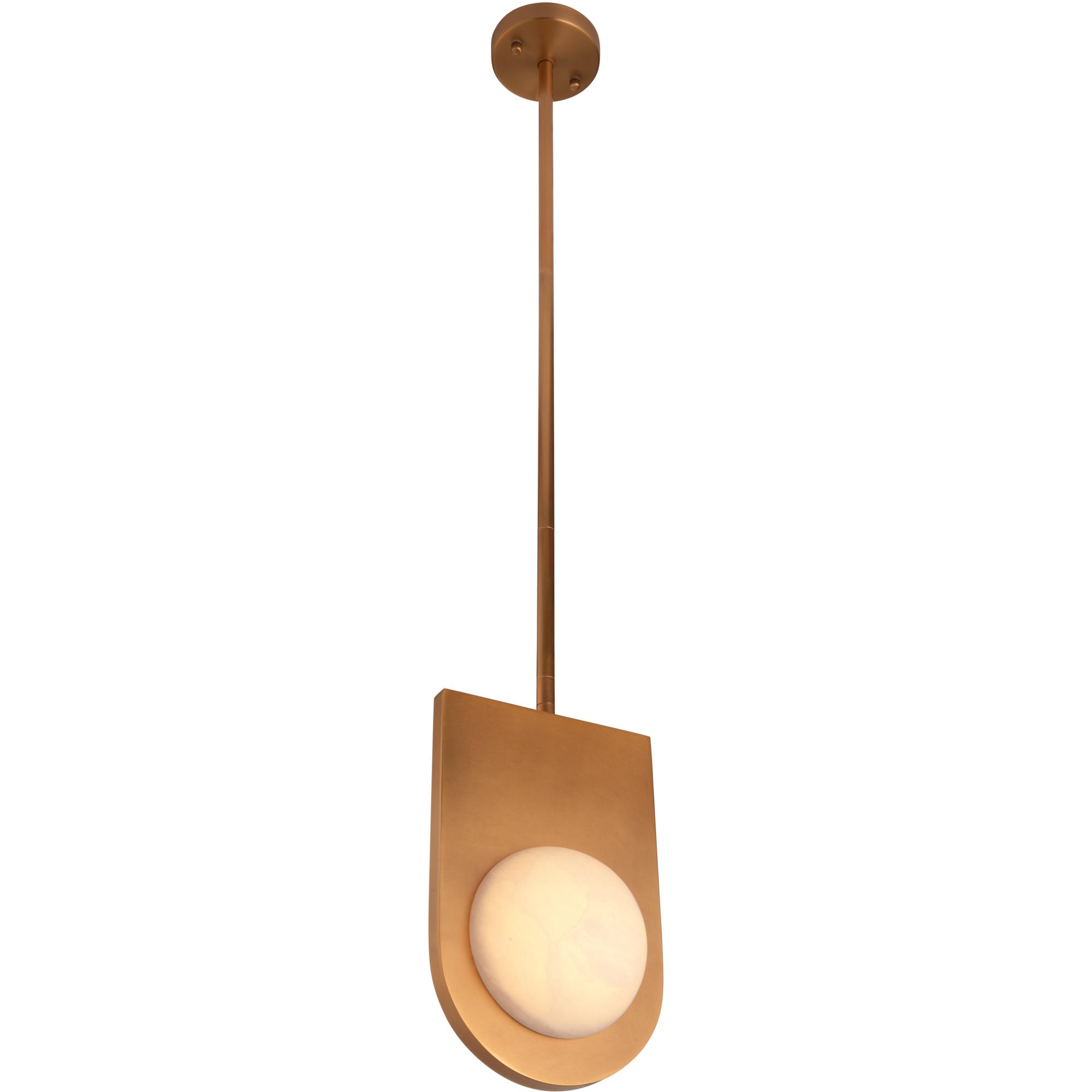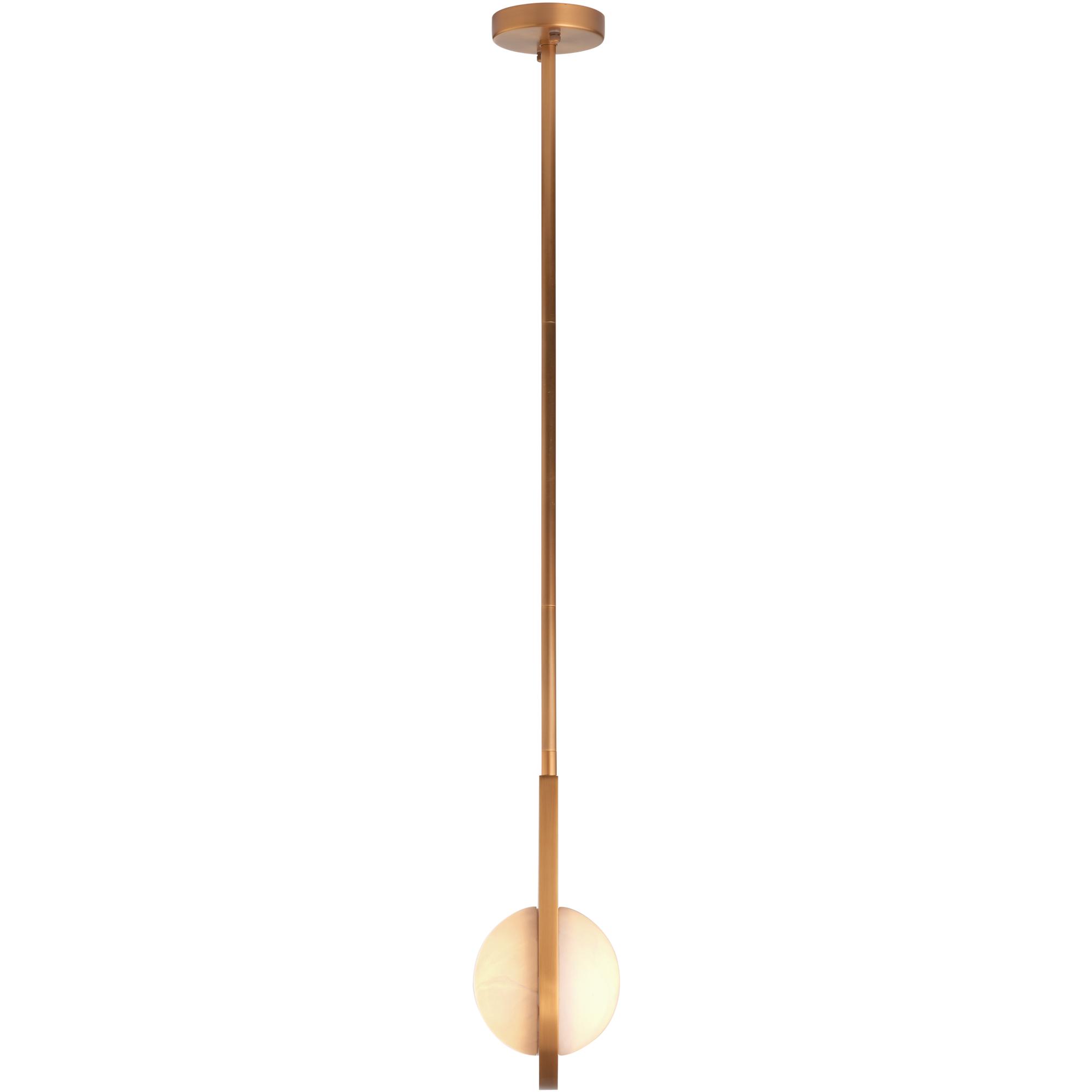 The Orin Pendant pairs antique brass with a smooth alabaster orb for a look that’s both sleek and sculptural. Its minimalist form brings a warm, ambient glow—ideal for kitchens, hallways, or clustered installations.