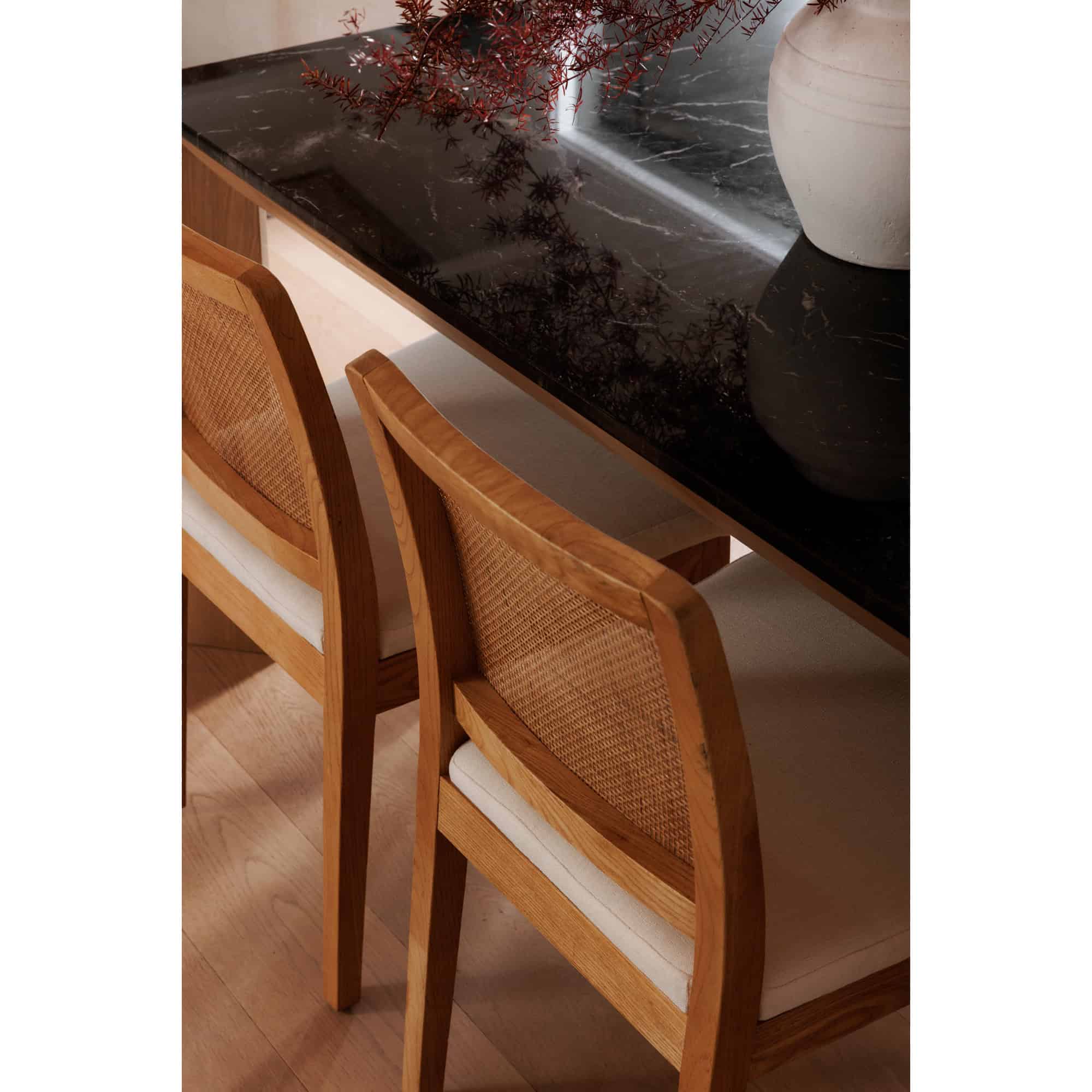 Comfort, style and substance, have it all with the Orville dining chair. Add warmth to your dining space with rattan – tracing back to nature, it’s a time-tested trend that nestles naturally into the home environment. Bring simplicity and balance with Orville’s softened contemporary aesthetic and airy mix of solid elm, natural rattan and brighter, cushioned upholstery. Pure comfort without any fuss, these neutral elements are easily styled in the dining room, kitchen or throughout the home.