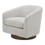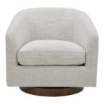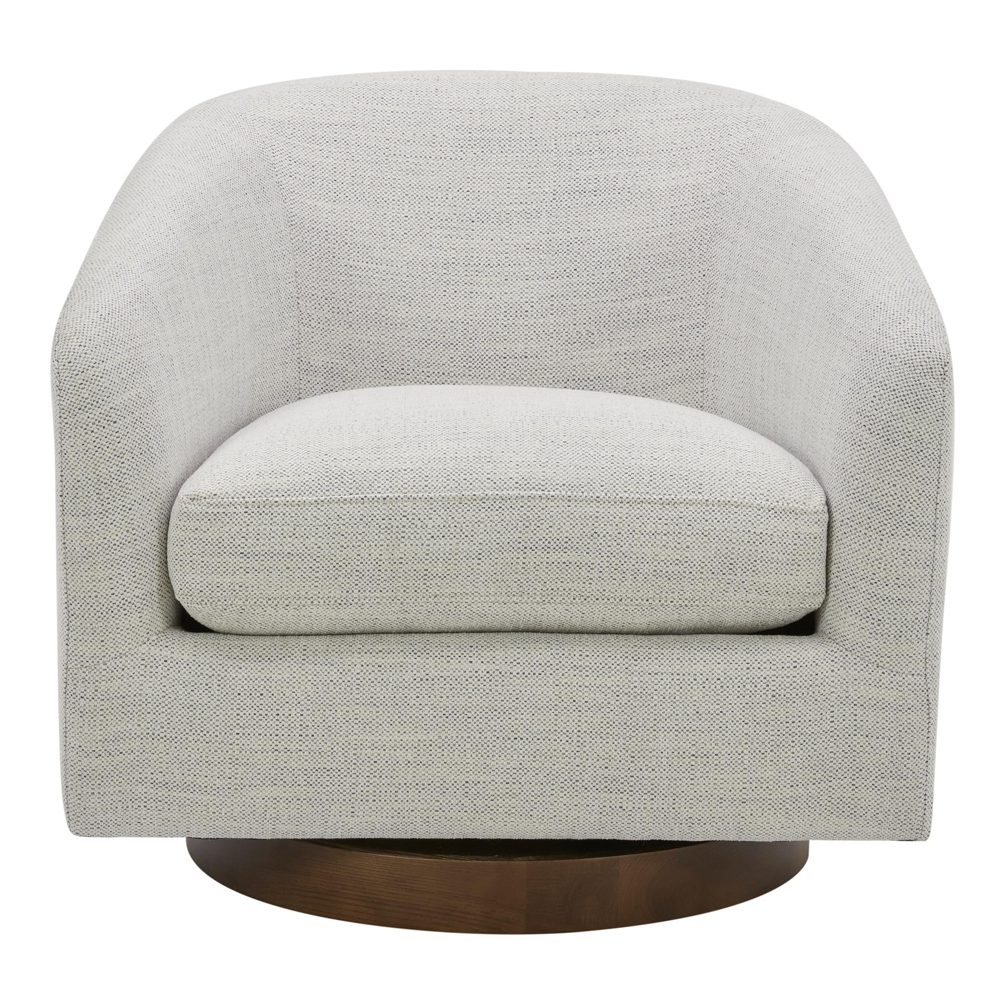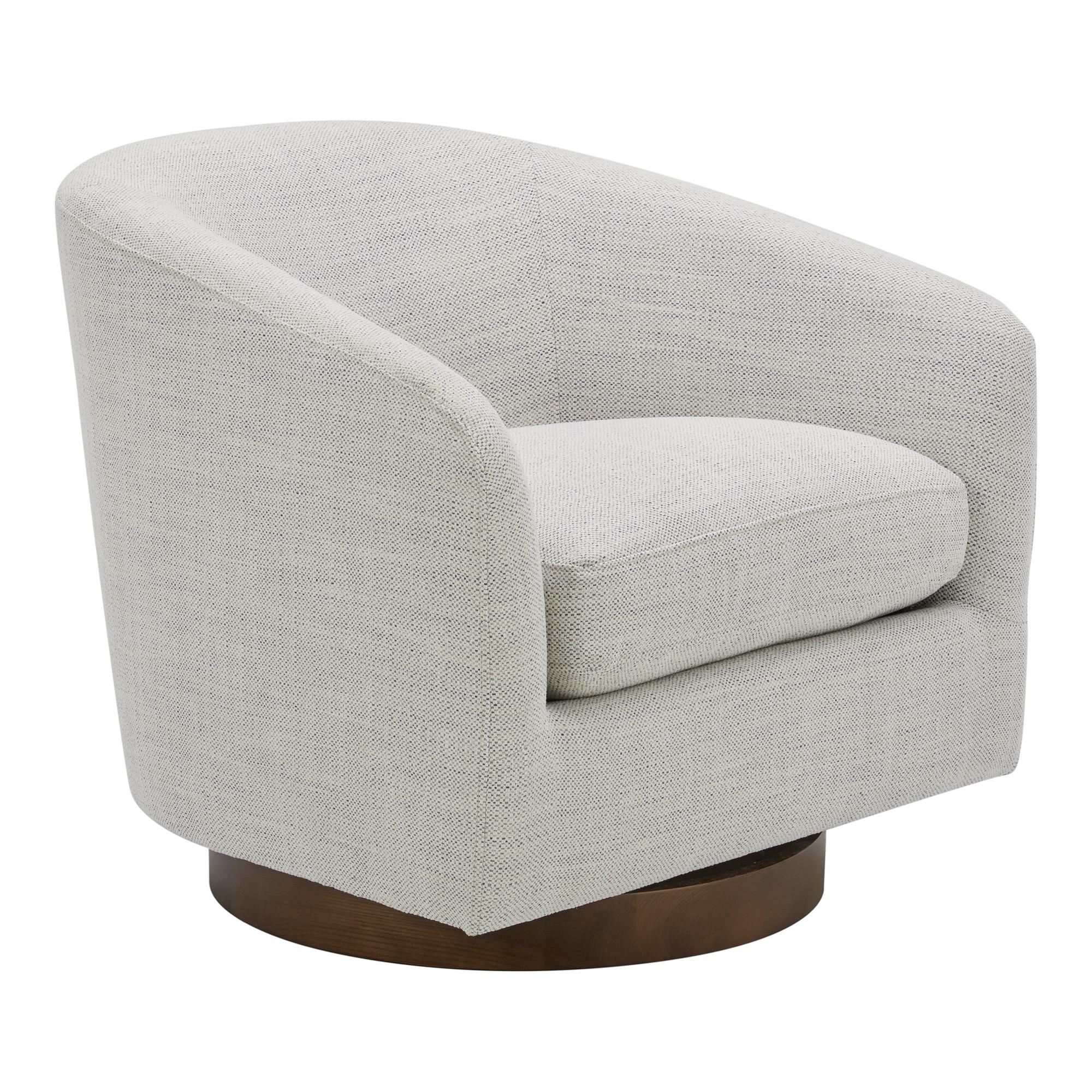 Light and cheerful. Calm and relaxed. The Oscy swivel chair is a cloud of comfort that brings airy energy and convenience into your living room with its 360° swivel, floating base design. Idyllic for a reading nook or as an accent chair, Oscy creates a chic retreat with softly textured fabric upholstery that looks fresh and keeps things cozy.