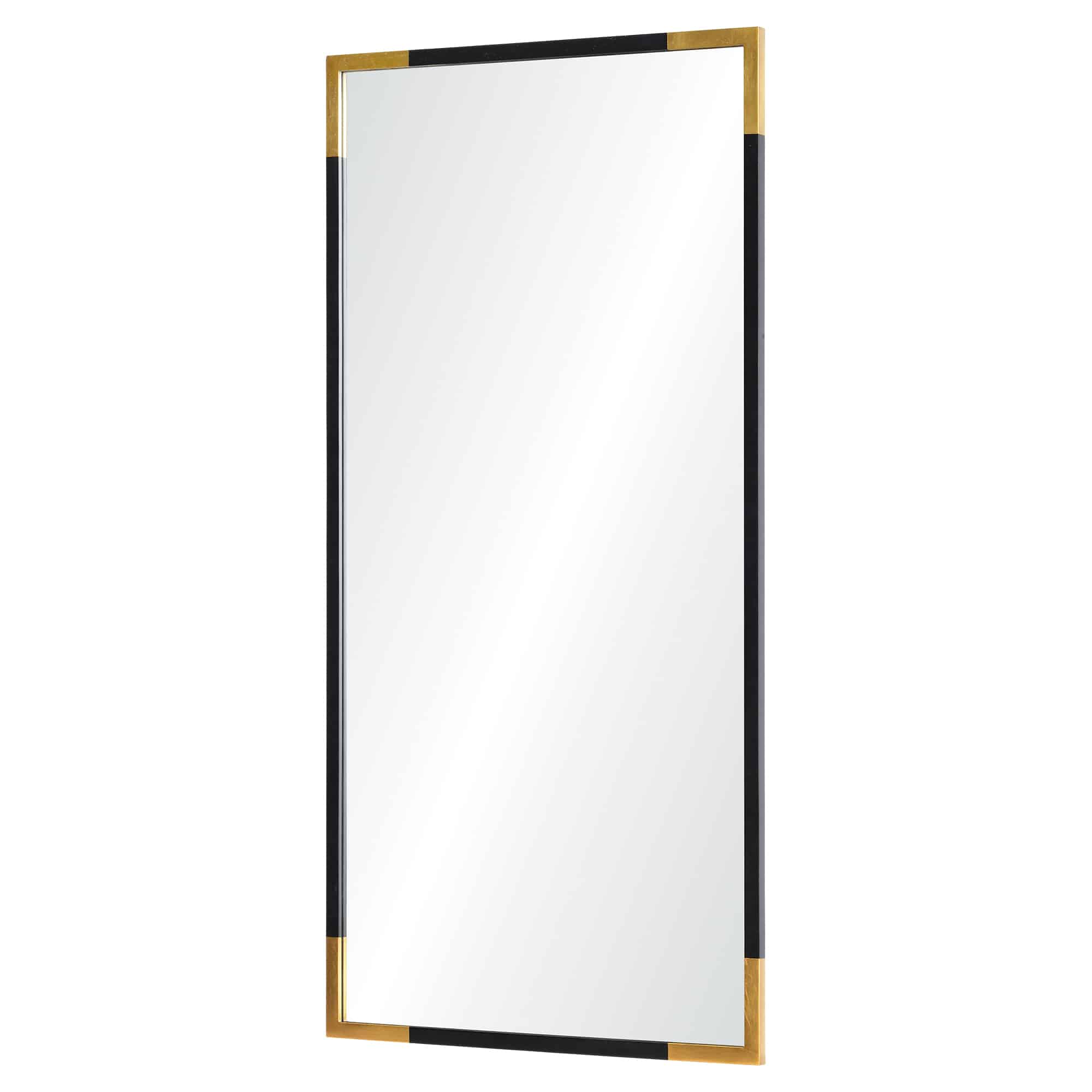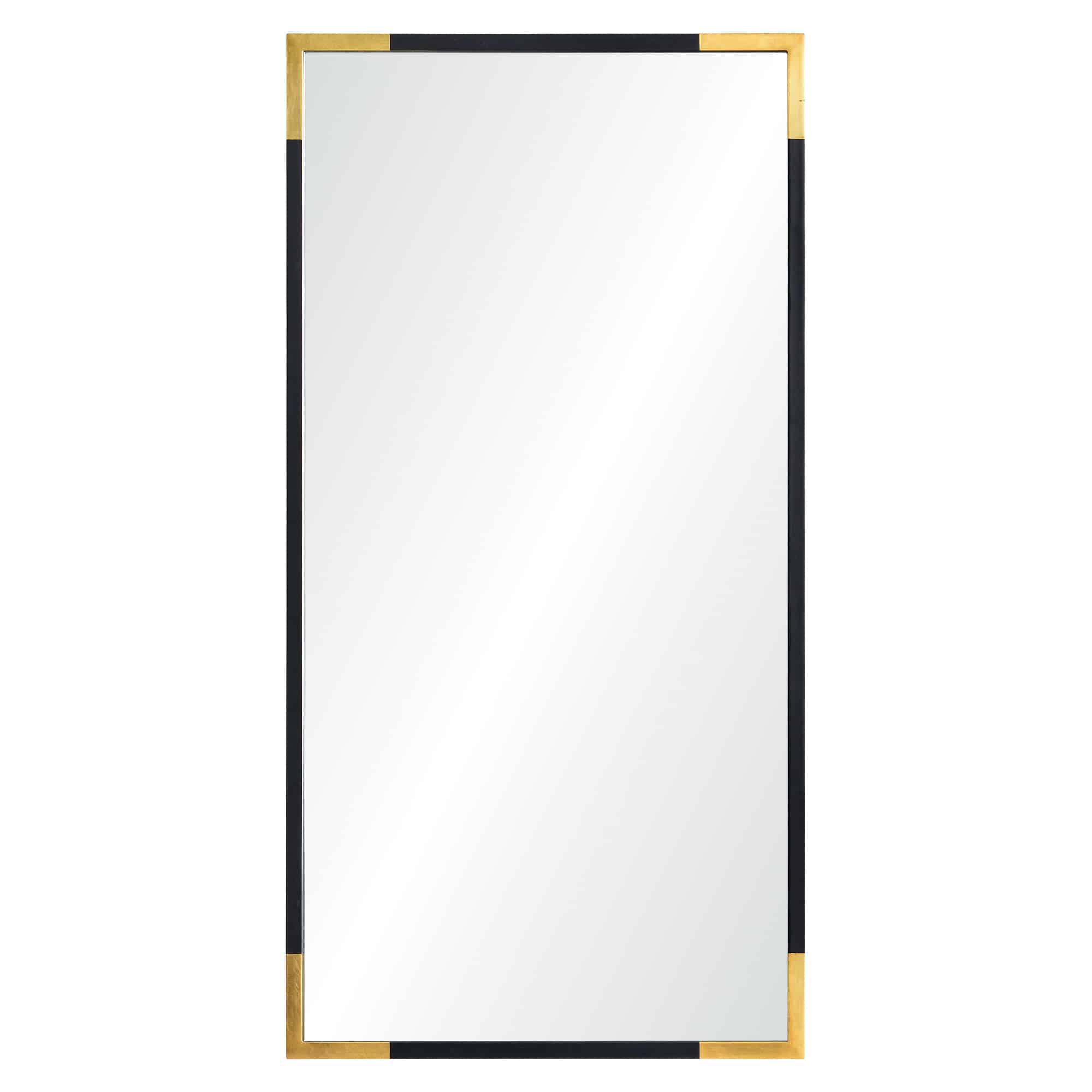 Lavish proportions and luxe finishes create a modern wall mirror that invites adoration. The decorative wall mirror’s thin black edges and gilded gold leaf corners add a touch of glamour to the thin profile of a natural wood frame. Mounted horizontally or vertically to suit your space, the full-length mirror format offers large-scale reflections for upscale city living.