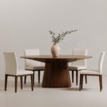 No corners, no problem. The Otago Table keeps things flowing with its space-smart oval top and sculptural pedestal base. Designed to seat six with ease, its softly curved shape encourages conversation while fitting seamlessly into dining areas of all sizes. A polished walnut veneer wraps from top to base, showcasing the wood’s natural movement in one continuous line. Clean, rounded, and grounded—Otago brings warmth without the bulk.