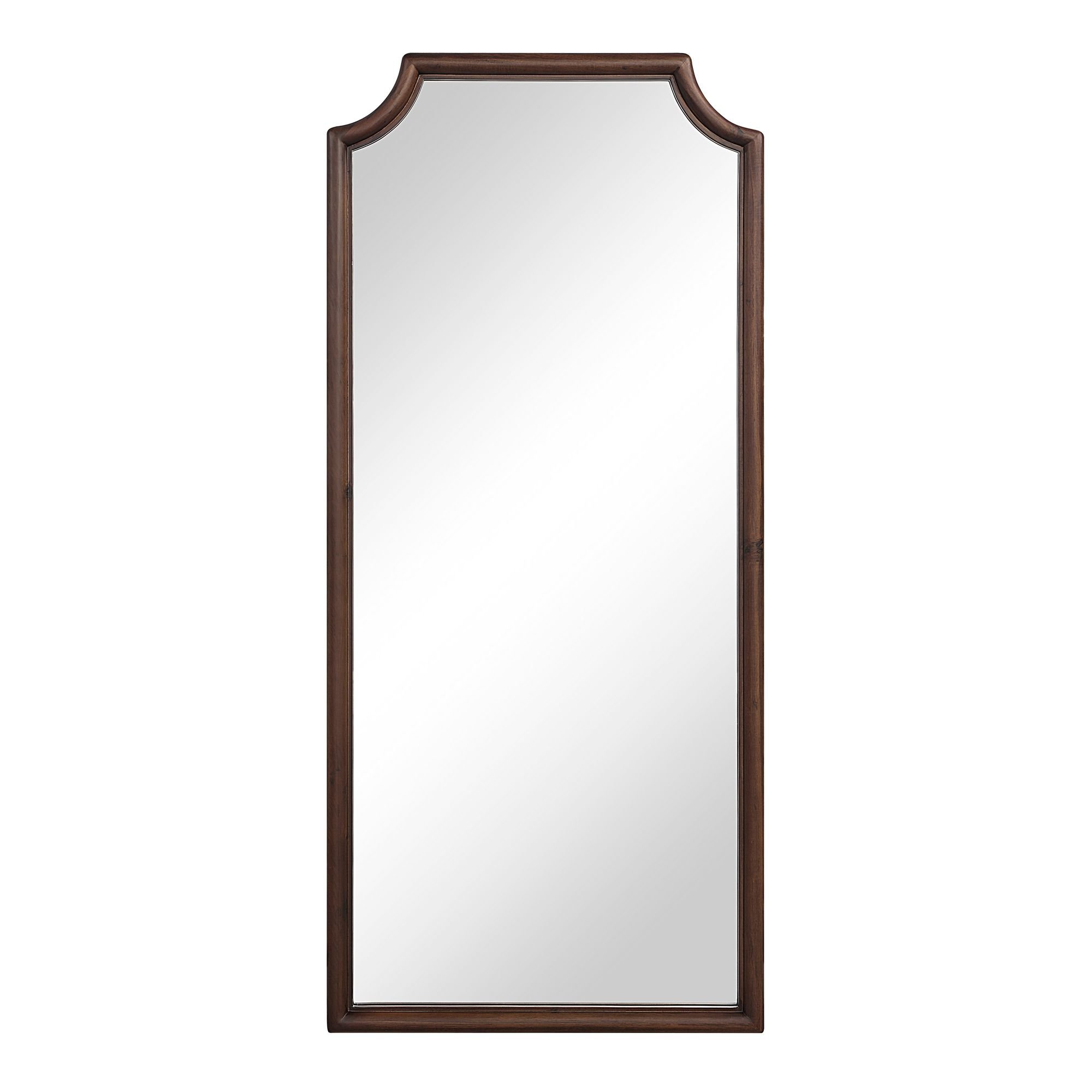 Loaded with enduring appeal, this full-length wall mirror would be a stylish pick for any transitional decorating scheme. Designed with classic lines, its substantial thickness wood frame features a timelessly chic walnut-painted finish for a look that represents your great taste. Crystal-clear mirror glass delivers a distortion-free reflection for a high-end feel in any space.
