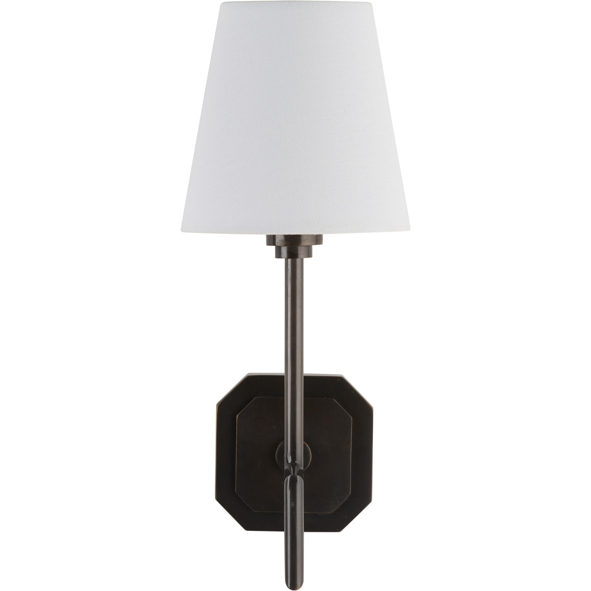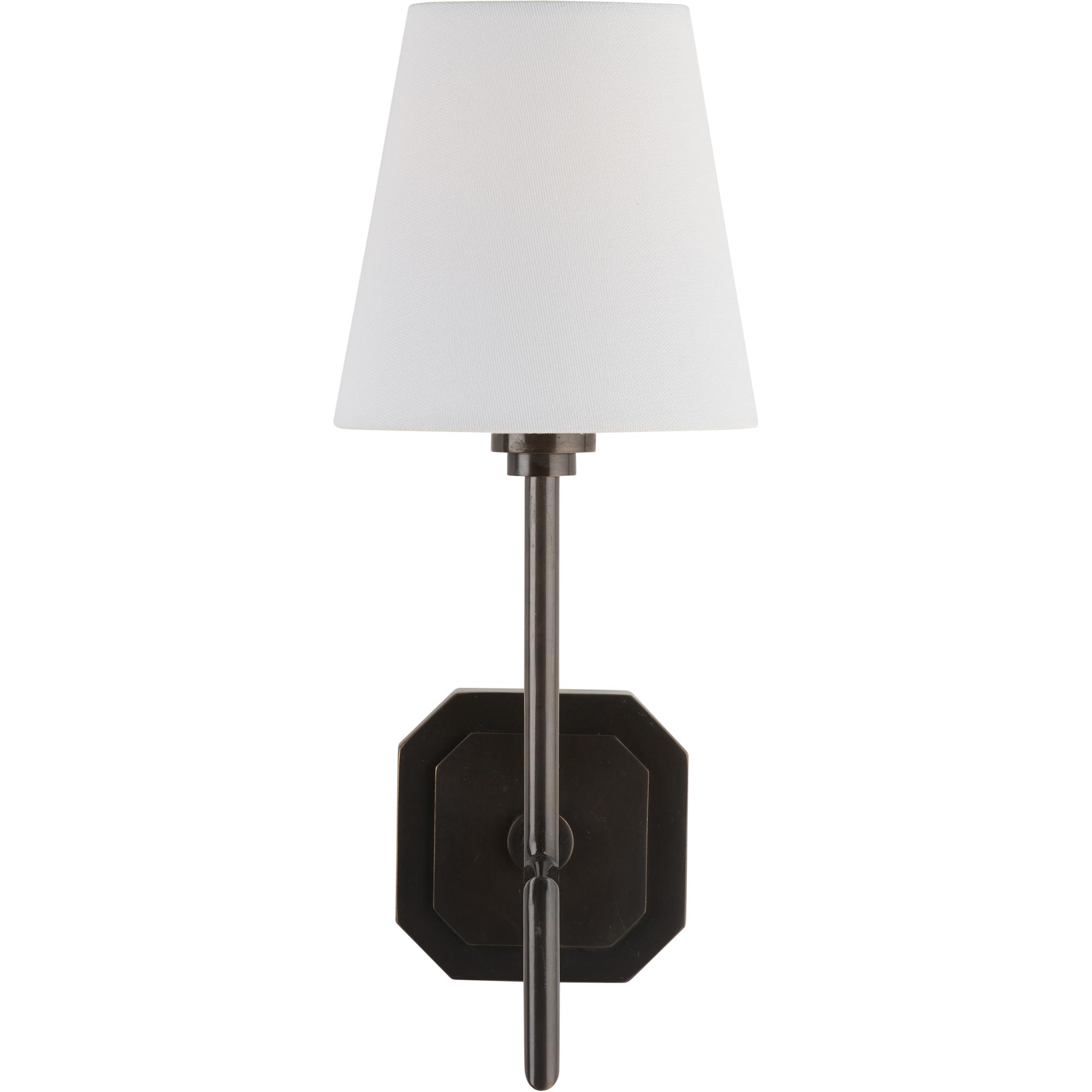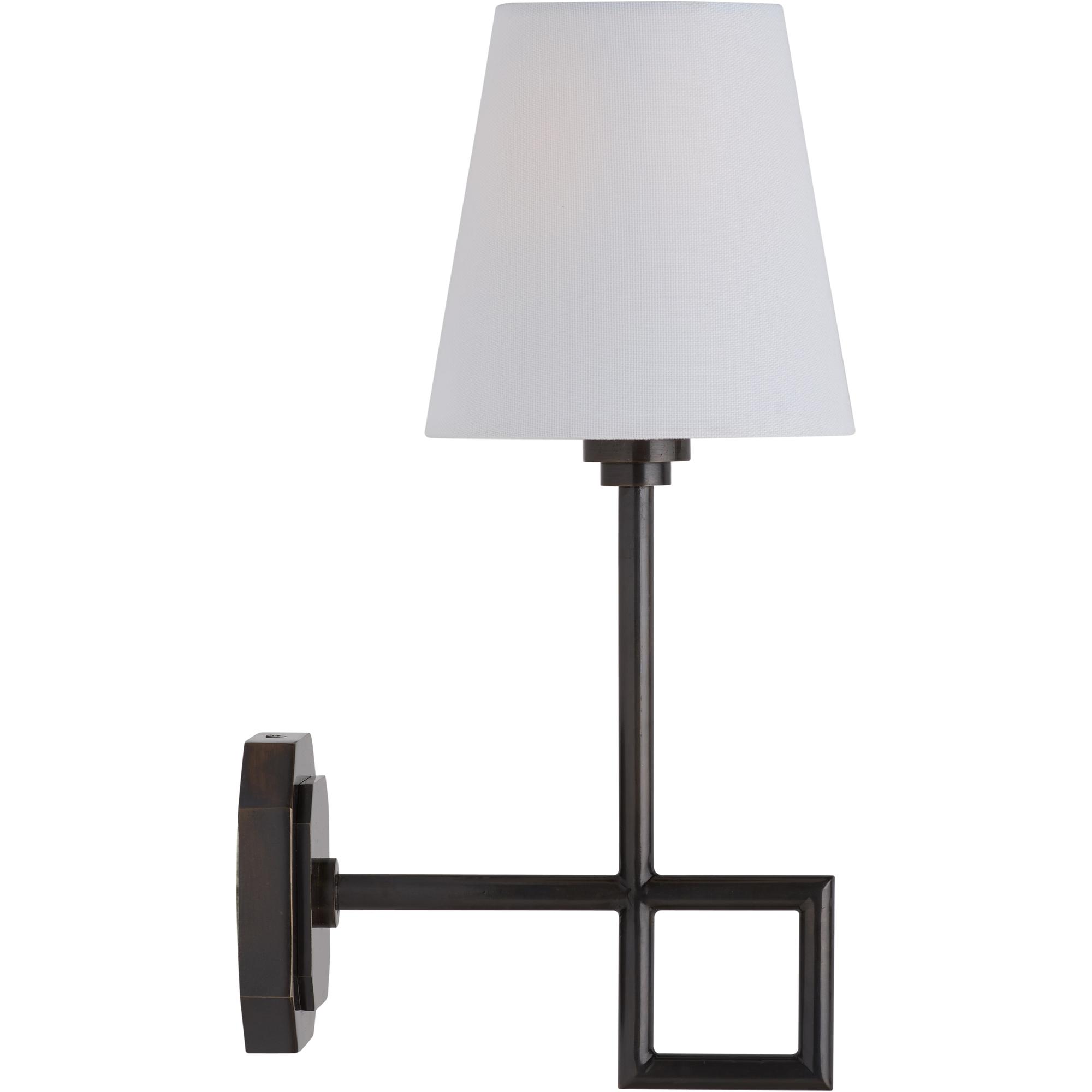 This sleek metal sconce features a modern silhouette with a bold square accent, adding a touch of architectural elegance. Finished in a rich oil rubbed bronze, it exudes warmth and sophistication, making it a perfect statement piece for any contemporary or classic space. Designed by Jamie Merida.Â