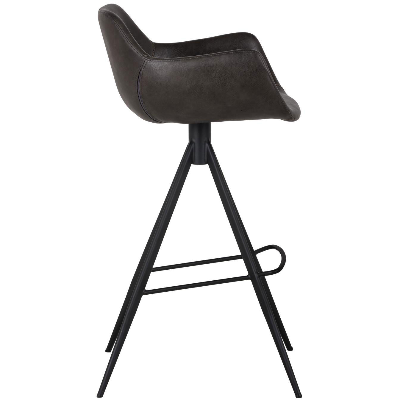 This comfortable swivel barstool is a mix of masculine, modern and urban design. Stocked in town grey faux leather with black powder-coated iron legs and a footrest. Features a 360 degree swivel range. Suitable for residential and contract environments and various dining, kitchen and bar spaces of all sizes. Handle With Care: This design has been crafted with faux leather. Faux leather is manufactured to reflect the natural characteristics of leather; as such, colour variations, markings, wrinkles, grooves, and light scratches are appreciated characteristics. No two pieces will be alike. Visit our Product Care page for more information on how to ensure the lasting beauty of this piece.