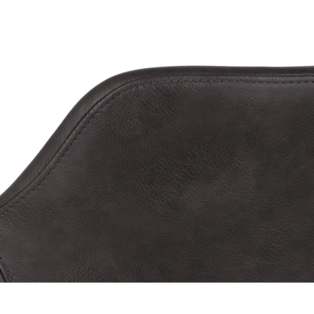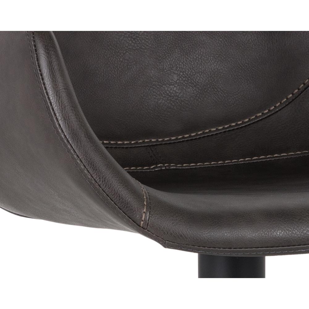 This comfortable swivel counter stool is a mix of masculine, modern and urban design. Stocked in town grey faux leather with black powder-coated iron legs and a footrest. Features a 360 degree swivel range. Suitable for residential and contract environments and various dining, kitchen and bar spaces of all sizes. Handle With Care: This design has been crafted with faux leather. Faux leather is manufactured to reflect the natural characteristics of leather; as such, colour variations, markings, wrinkles, grooves, and light scratches are appreciated characteristics. No two pieces will be alike. Visit our Product Care page for more information on how to ensure the lasting beauty of this piece.