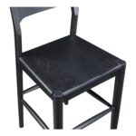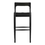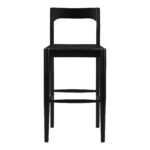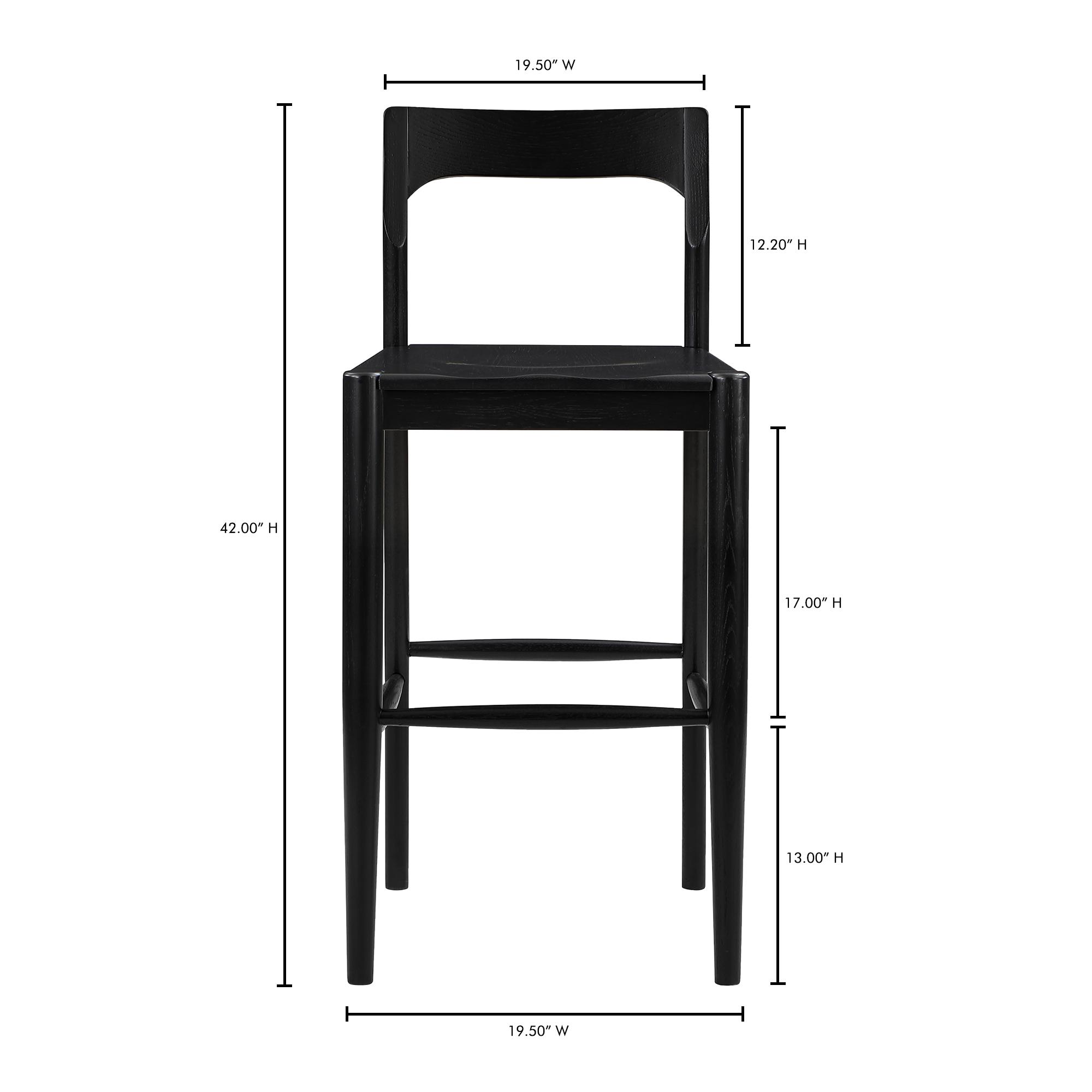 Available in blackened oak, the Owing counter stool is an updated take on a mid-century style. Its mid-height, curved, open-back design combines comfort with casual appeal, while its solid wood frame creates a timeless, mid-century silhouette.