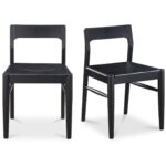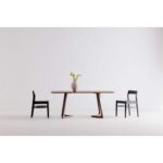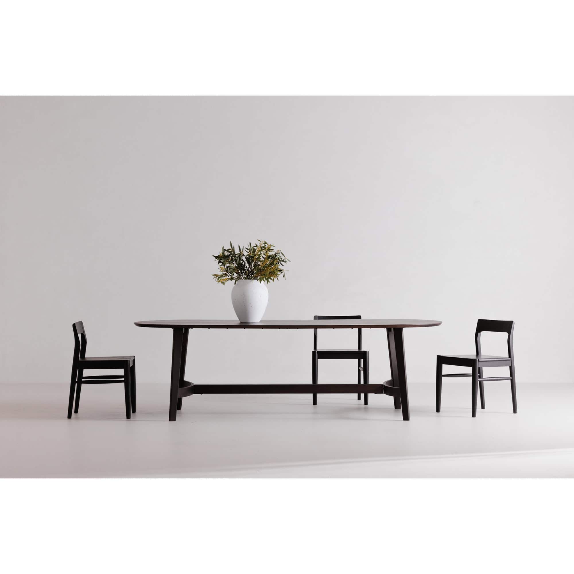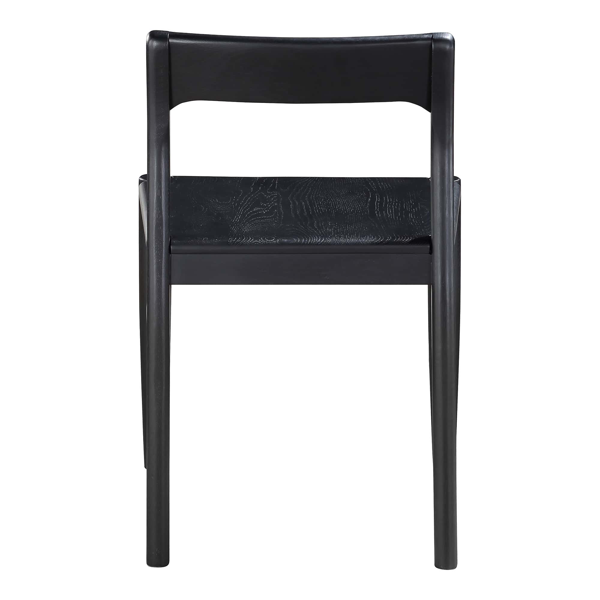 Available in blackened oak, natural oak and walnut, the Owing dining chair is a sophisticated spin on the traditional. Its mid-height, curved, open-back design combines comfort with casual appeal while its solid wood frame creates a timeless, mid-century silhouette—a seat that is as distinguished as it is inviting.