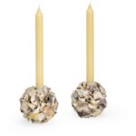 Pair of decorative oyster shell candleholders. (1/2″ taper candle not included)