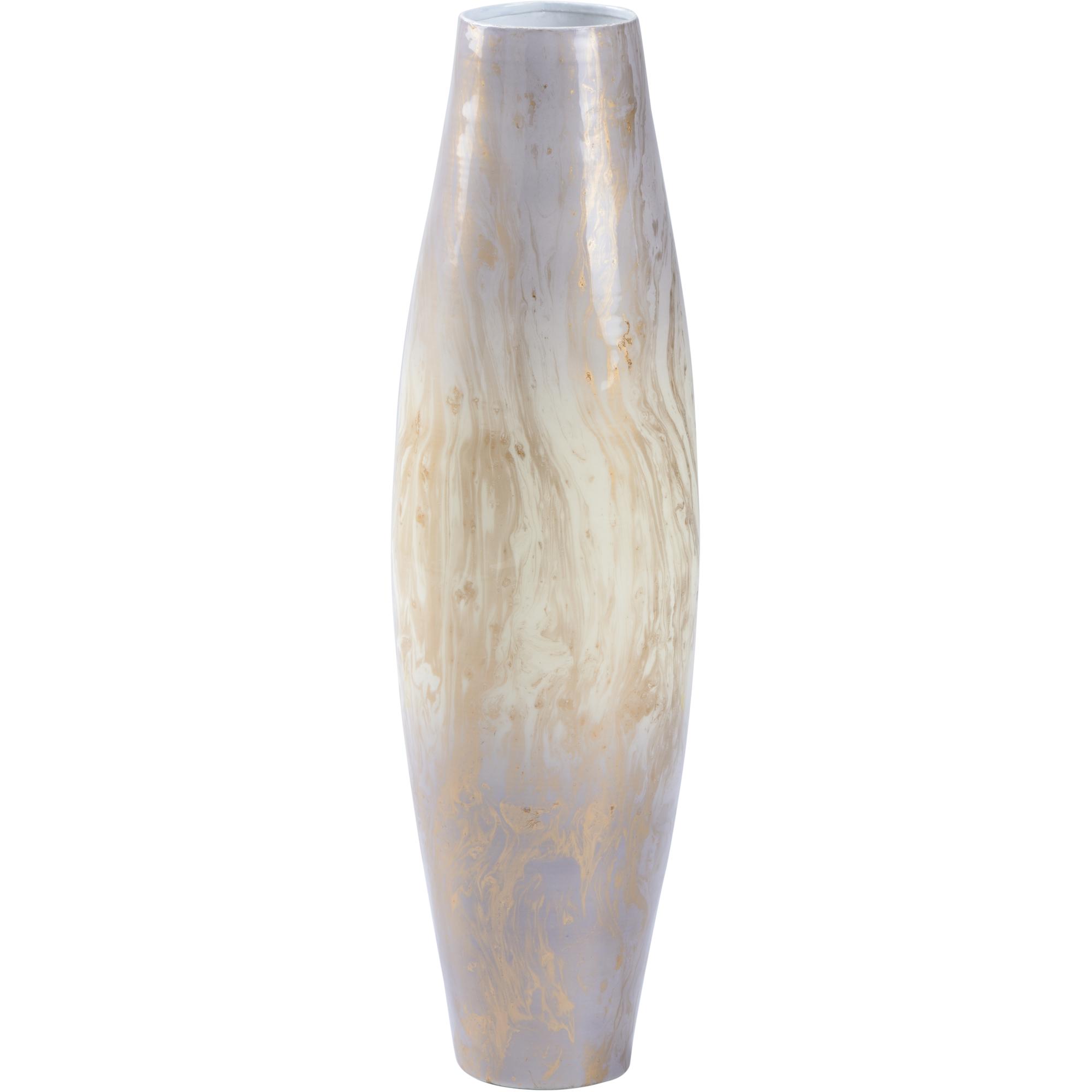Oyster Swirl Vase is a large, enameled vase that features an eye-catching gold and white abstract ombre design. Provide charm in any room by adding cherry blossoms, pussy willow branches or tall faux flowers.