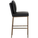This barstool features a clean and comfortable design. Designed with a cushion-like seat back in bravo black faux leather with antique brass iron legs. Suitable for various dining, kitchen and bar spaces of all sizes. Handle With Care: This design has been crafted with faux leather. Faux leather is manufactured to reflect the natural characteristics of leather; as such, colour variations, markings, wrinkles, grooves, and light scratches are appreciated characteristics. No two pieces will be alike. Visit our Product Care page for more information on how to ensure the lasting beauty of this piece.
