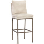 This barstool features a clean and comfortable design. Designed with a cushion-like seat back in bravo cream faux leather with antique brass iron legs. Suitable for various dining, kitchen and bar spaces of all sizes. Handle With Care: This design has been crafted with faux leather. Faux leather is manufactured to reflect the natural characteristics of leather; as such, colour variations, markings, wrinkles, grooves, and light scratches are appreciated characteristics. No two pieces will be alike.
