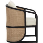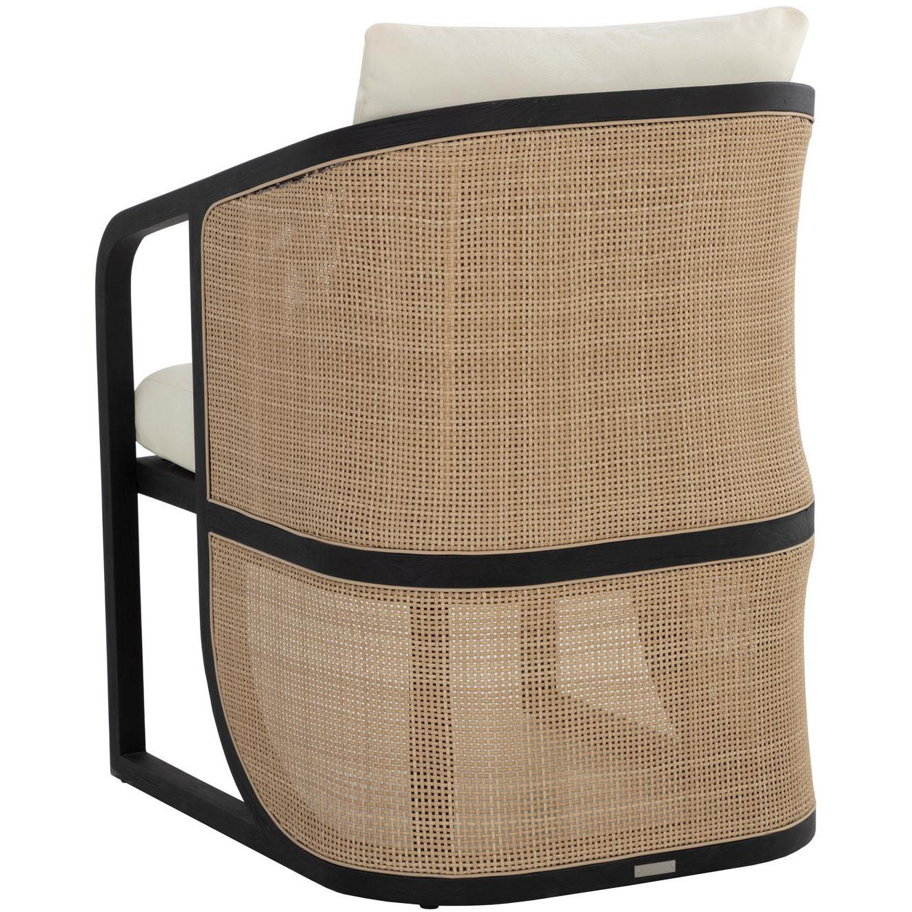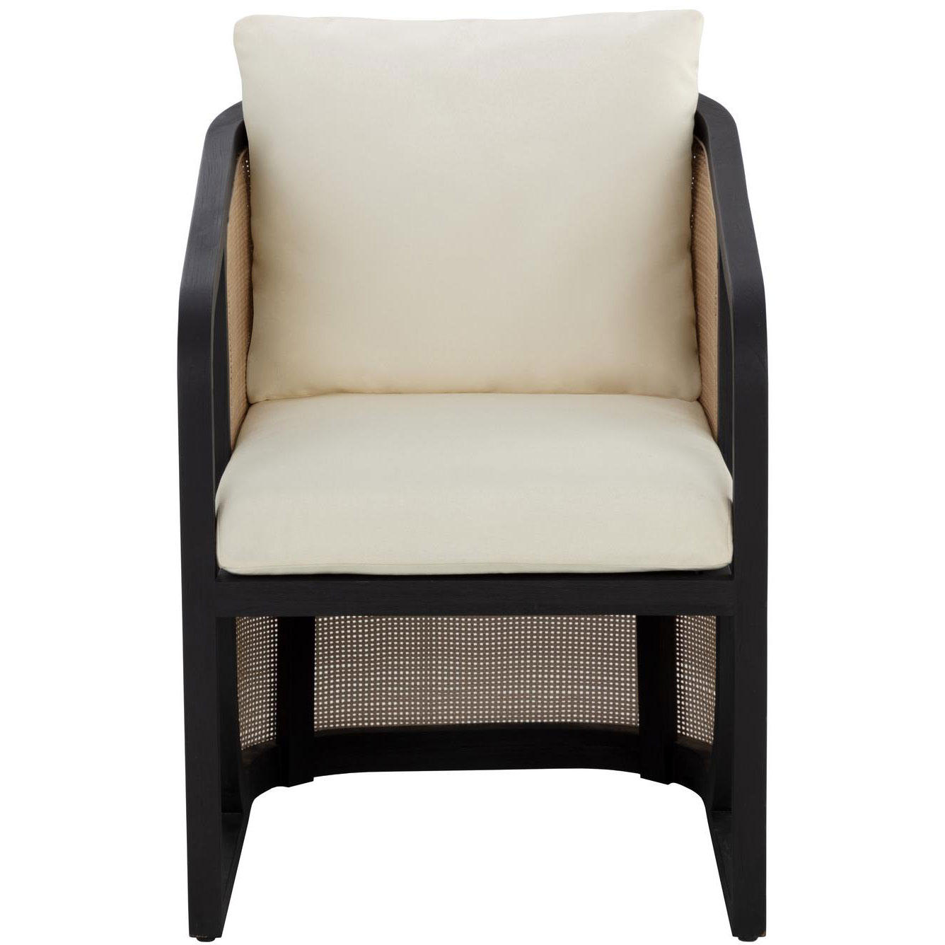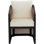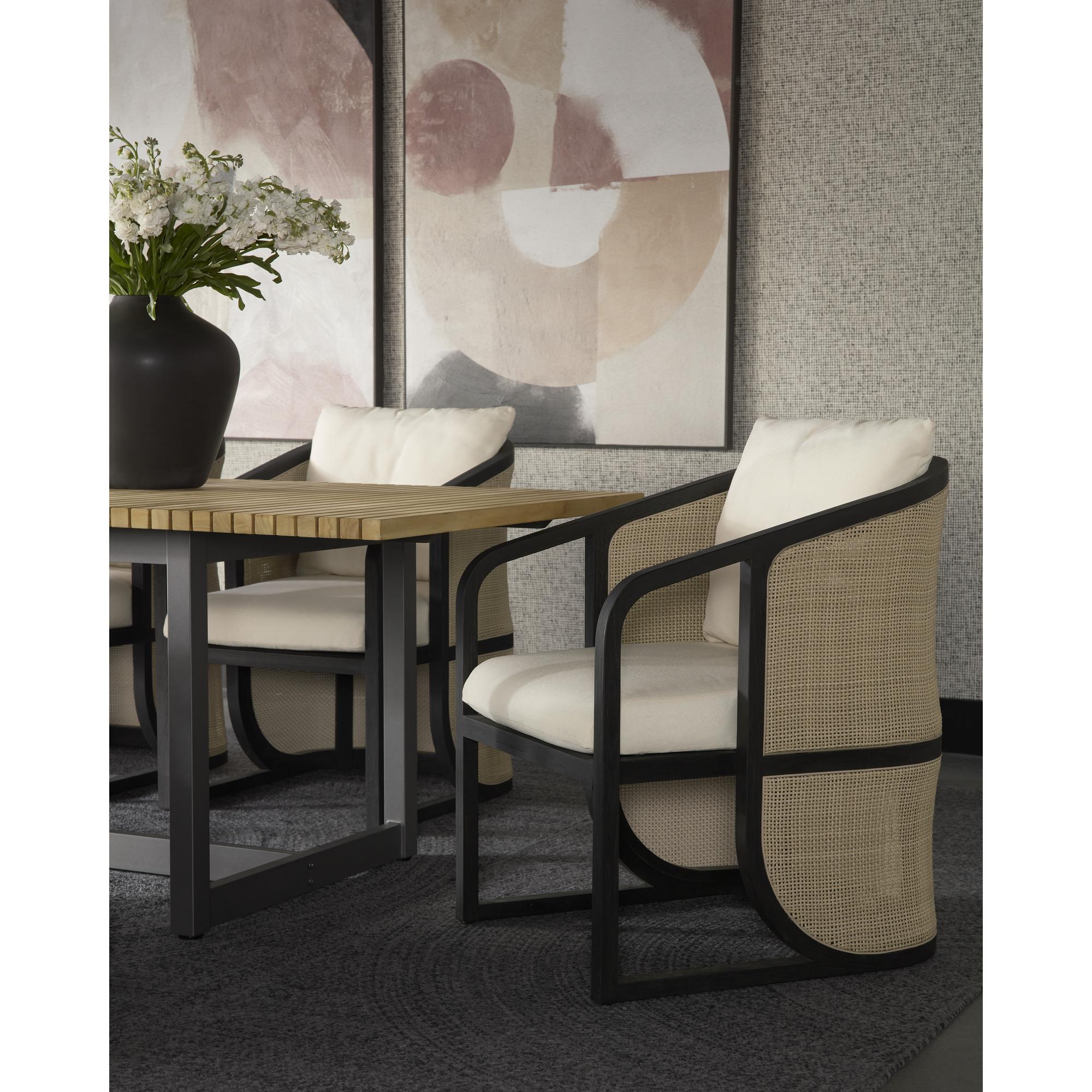The eye-catching curved silhouette of the Palermo Dining Chair is sure to be an appealing addition to any outdoor space. The barrel backrest features a contrast of materials and colours with a combination of polyethylene cane wicker weave and charcoal teak wood. Comfortable cushioning is upholstered in our stinson cream fabric with sloped arms that give it a floating chair appearance. Suitable for indoor and covered outdoor spaces.