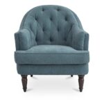 Sit like every seat was made just for you. The Pandora Accent Chair layers tufting, piping, and a soft curved back for heirloom-inspired comfort. Upholstered in playful light blue performance fabric with a velvety hand, it pairs supportive cushioning with dark-stained turned wood legs for a traditional touch. Designed to feel fresh, grounded, and enduring, Pandora brings heritage details into the present with ease.