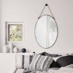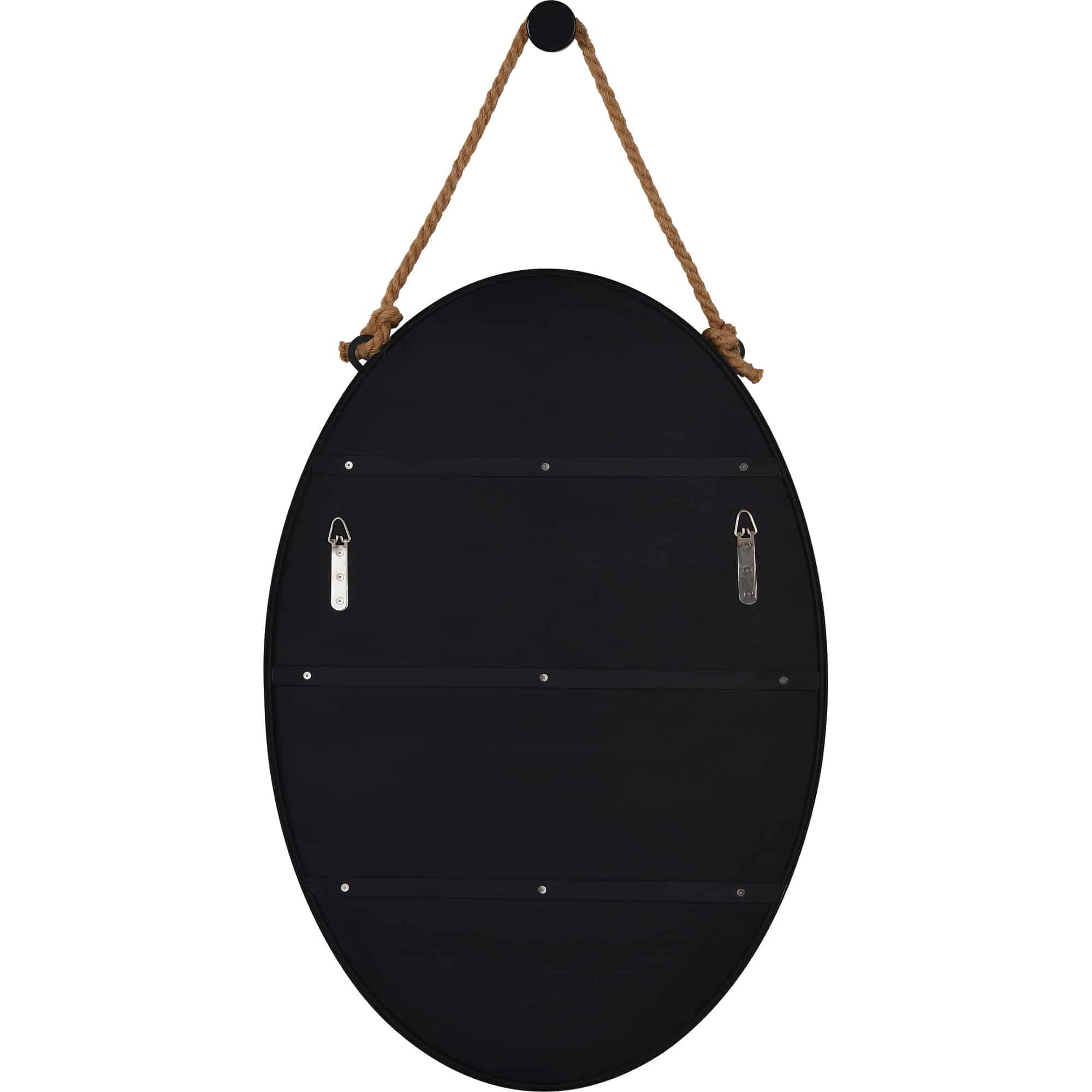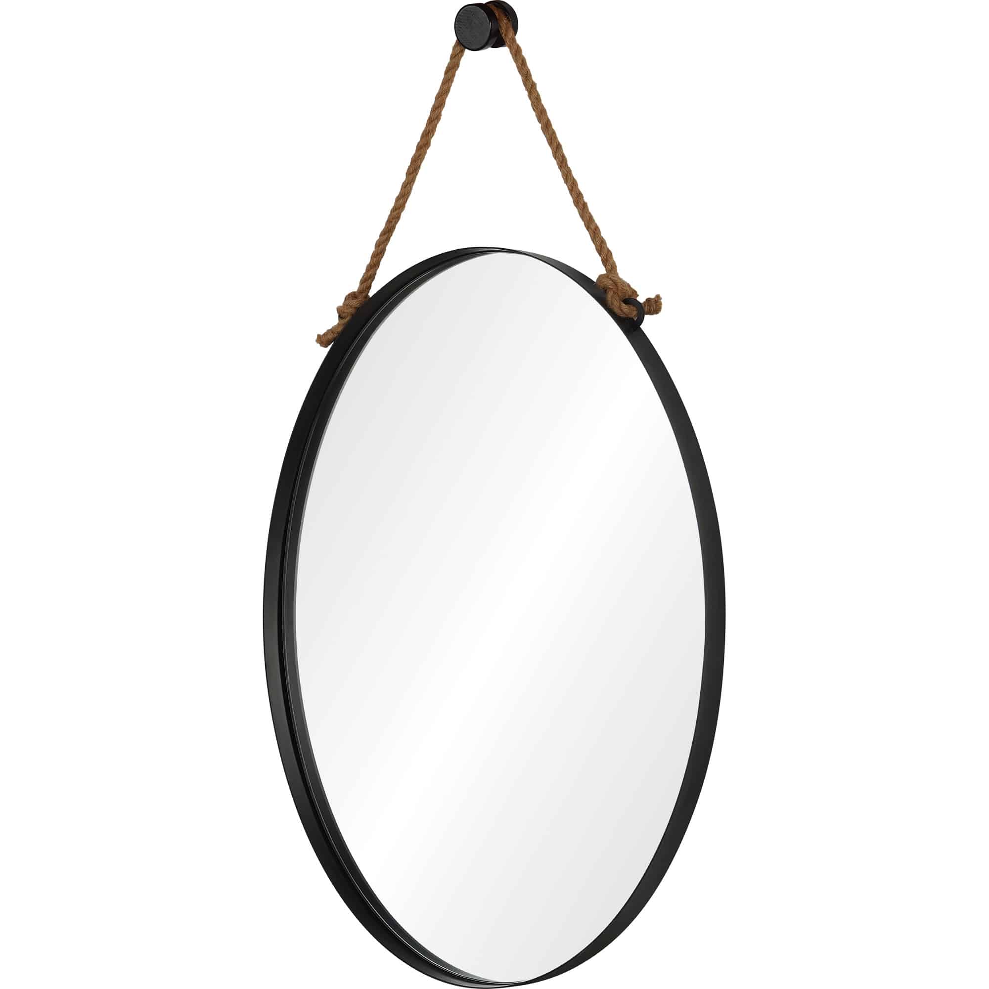 A new take on the traditional. This classic oval shaped mirror is framed with black powder coated iron. Decorative hemp rope and hook make for a surprising design detail, perfect for an chic industrial space.