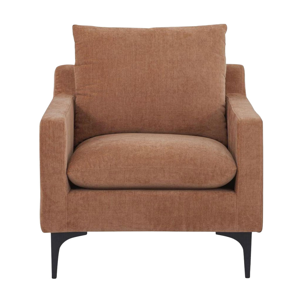 - Modern silhouette: A clean, blocked frame with a slightly angled backrest strikes the balance between structured poise and casual ease, giving the armchair versatile presence in any space.