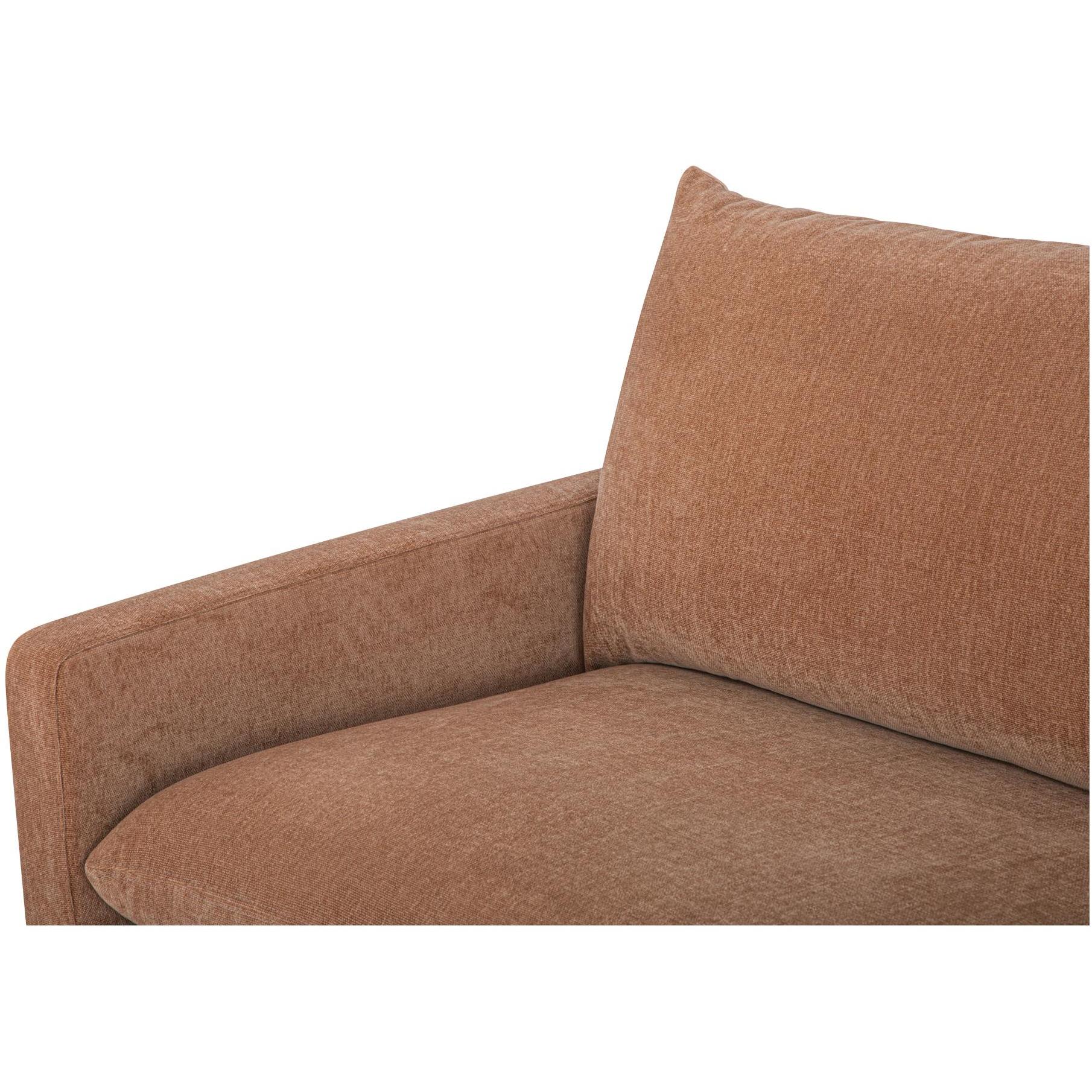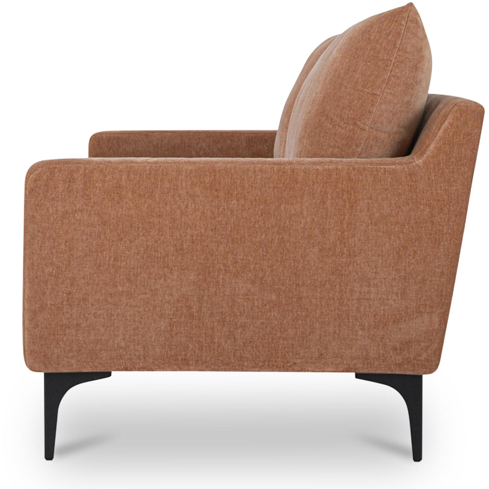 - Warm modern style: Clean lines, slim arms, and black steel legs create a refined silhouette with soft details that keep things relaxed.