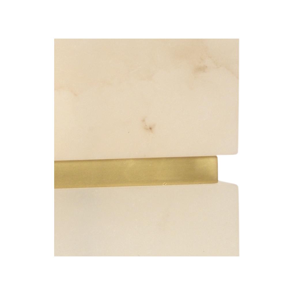 Two floating slabs of natural alabaster incased by an antique brass mounting.