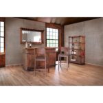 The Parota barstool showcases a padded faux leather seat, embodying a timeless aesthetic and comfort. Its robust wooden frame, complete with a supportive backrest, ensures durability.
