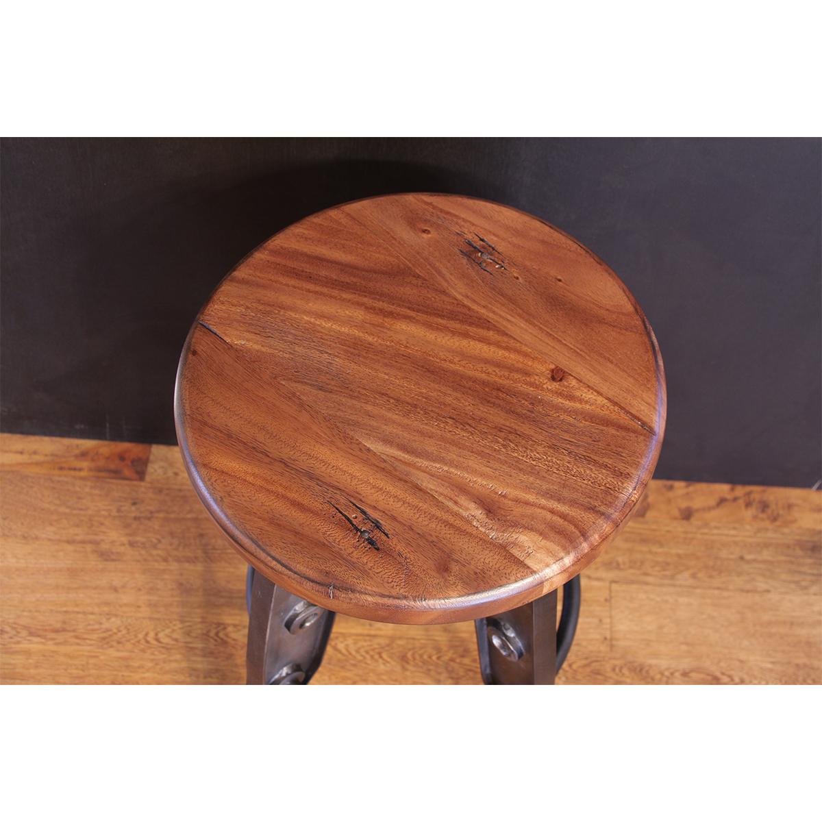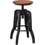 Parota Wooden Round Seat Adjustable 24-30″ Swivel Iron Base Barstool