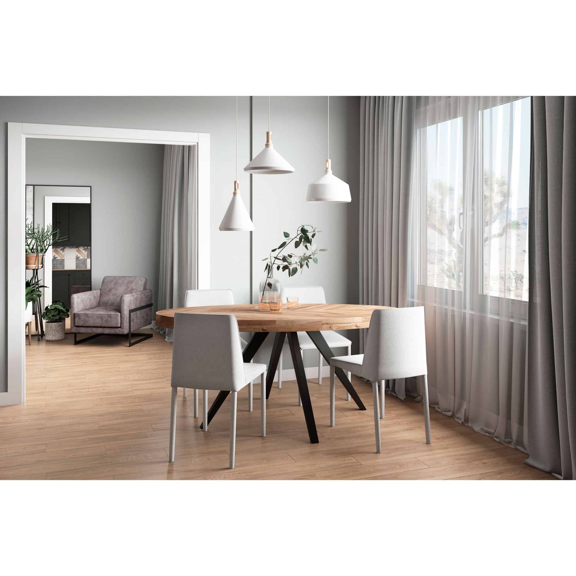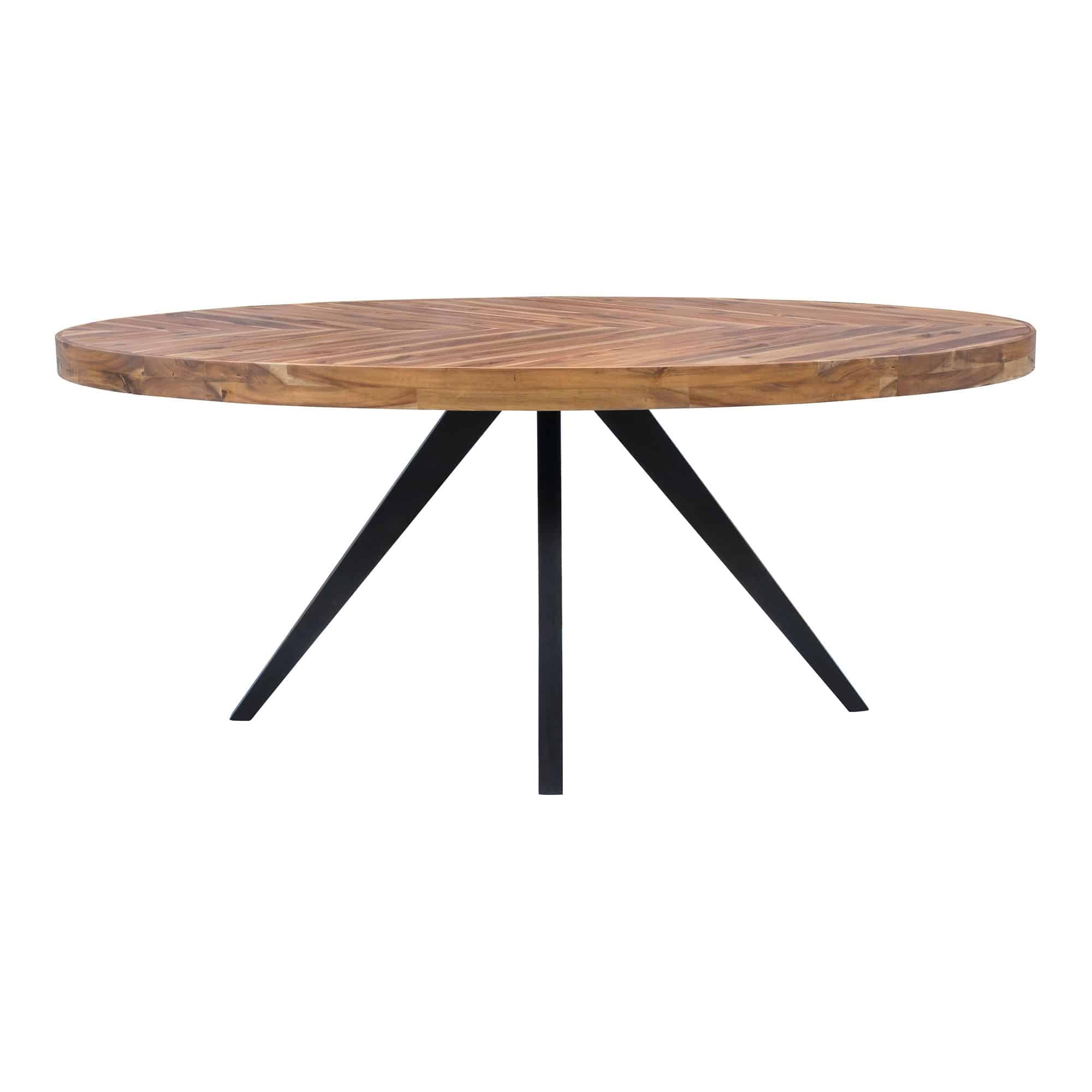 The Parq Oval dining table is a sophisticated fusion of modern design and rustic charm. Each piece of solid Acacia is meticulously hand-selected to create a visually interesting tabletop, with careful consideration given to the natural variations and final appearance of each individual piece. The table’s parquet-patterned top is complemented by elegant, black-painted legs, the robust industrial metal base providing a striking contrast.