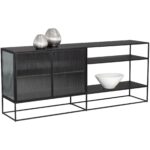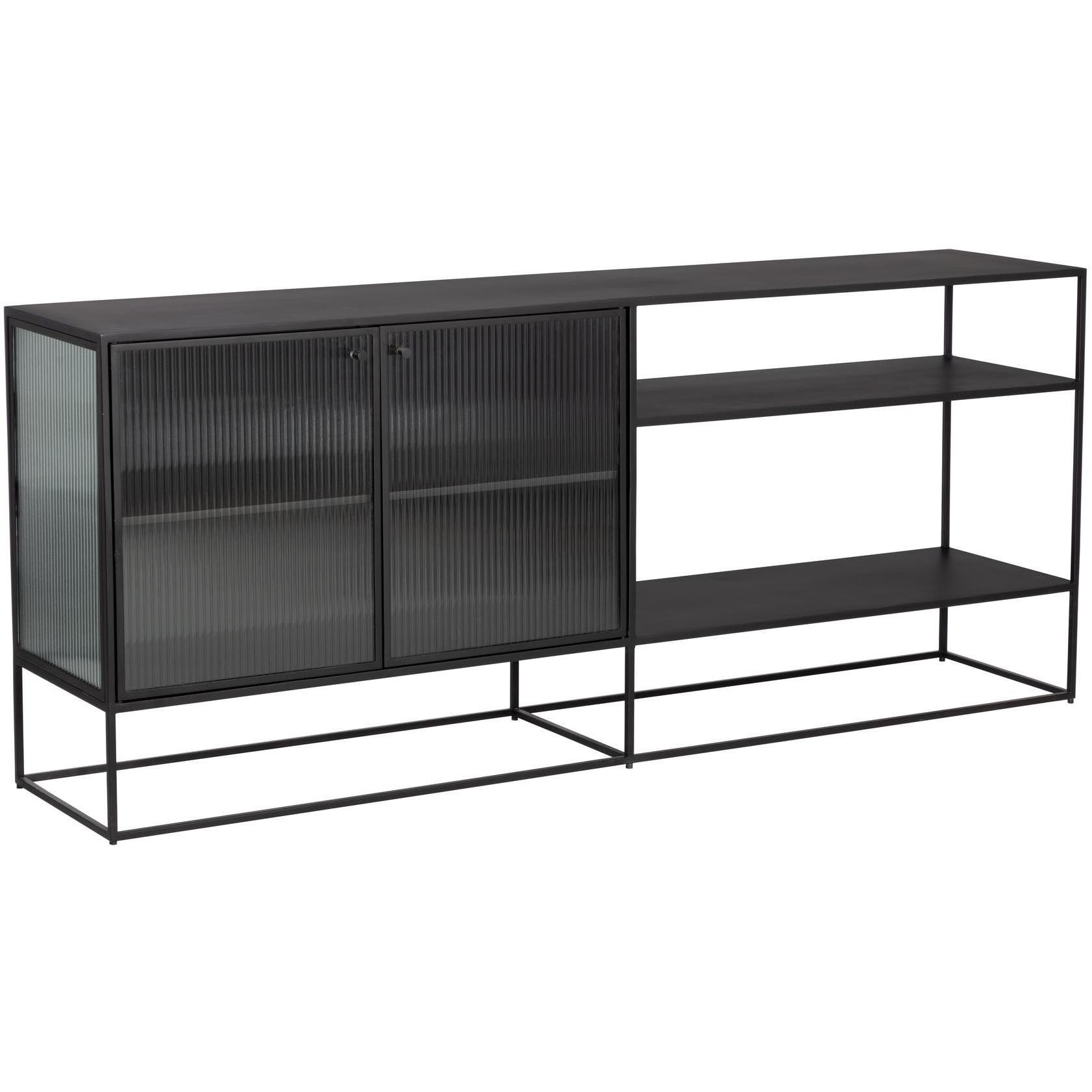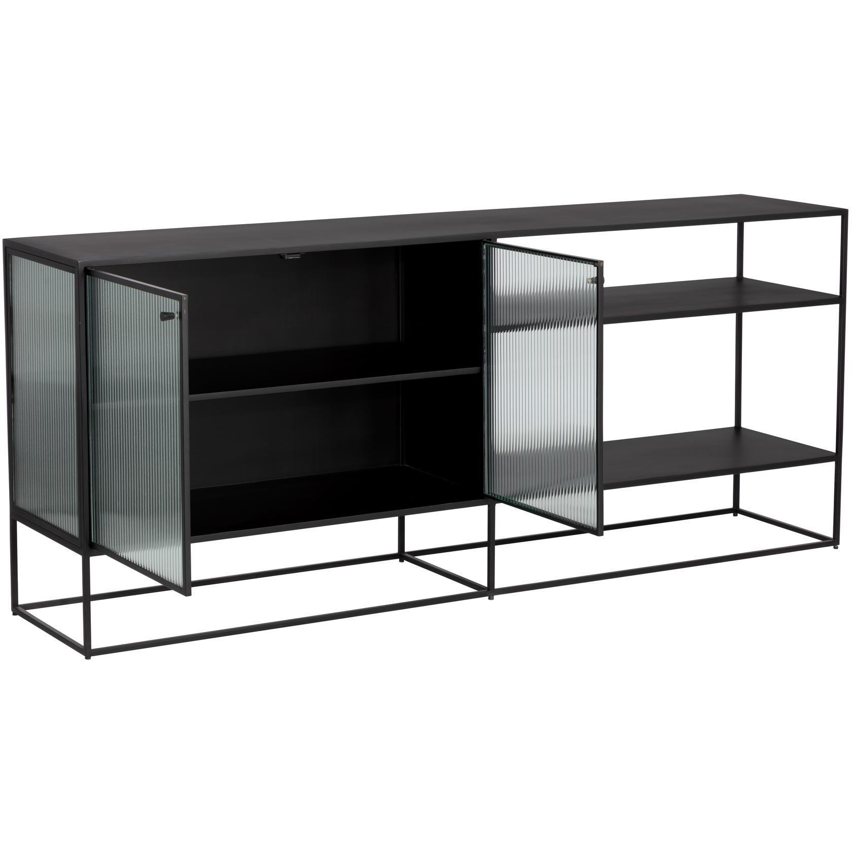 Inspired by mid-century modern designs, this large sideboard evokes a timeless and minimalist style. Crafted with a matte black iron frame and features fluted glass doors. Also available in a small size.