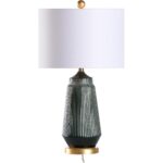 Brighten your home with this charming transitional table lamp. The Penelope Lamp features a deep teal glaze on ceramic with a gold base and parts. A classic white drum shade completes the look creating a glamorous pop of color perfect for a bedroom, entryway or living room.