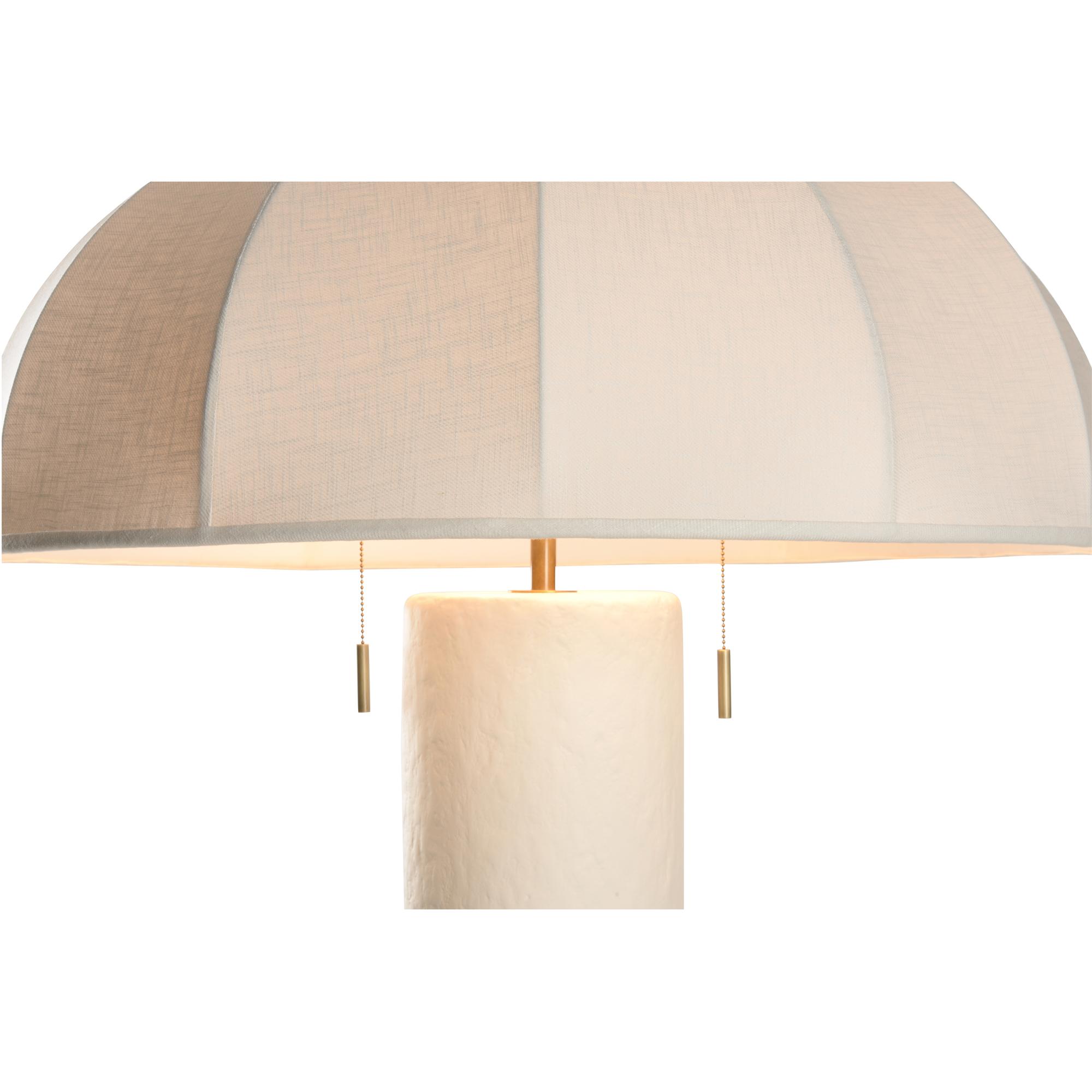 The perfectly balanced Perruche Floor Lamp combines form and function creating a lamp uniquely its own. The pair of pull chains perfectly flank the main column, crafted of gesso, while the ribbing of the linen shade mimics an umbrella. Also available as a table lamp and coordinating pendant.