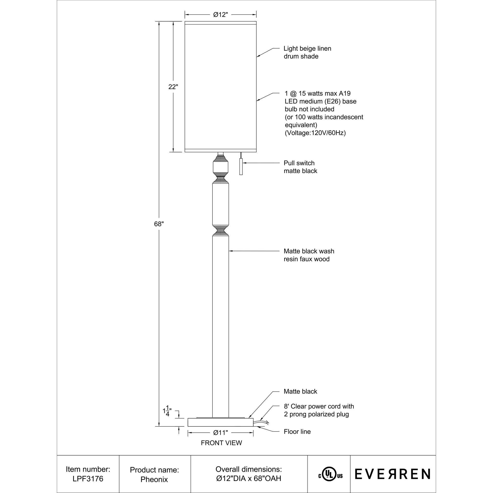 The Pheonix floor lamp proves that adding a touch of black to a room is an excellent way to ground it. Designed with a modern geometric body, its clean lines are emphasized further by an elongated cream linen shade to deliver a bold look that takes notice. Give its stylish pull chain a simple tug to customize the light intensity to suit the mood and set the perfect ambiance in any room.