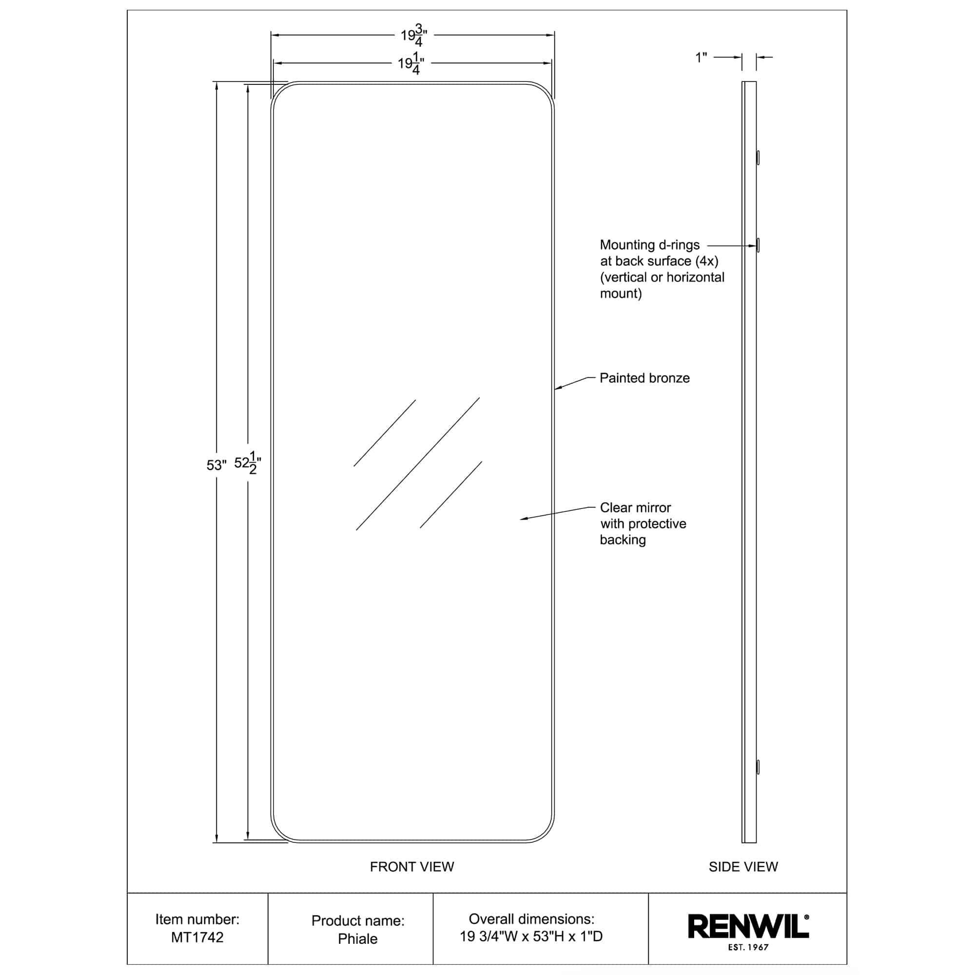 The low profile of this rectangular wall mirror serves as a stunning addition to interior walls in every room. The slightly inset looking glass is surrounded by a bronze metal frame for a touch of metallic minimalism. Gently rounded corners add a delicate curve to each edge, while the long rectangular format can be hung horizontally or vertically for a full-length view.