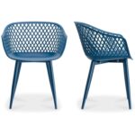 Take a seat in the stylish and comfortable Piazza Chair. Made with a durable polypropylene, this chair comes in several colors that will be sure to complement your outdoor design with its whicker backing and powder coated metal legs