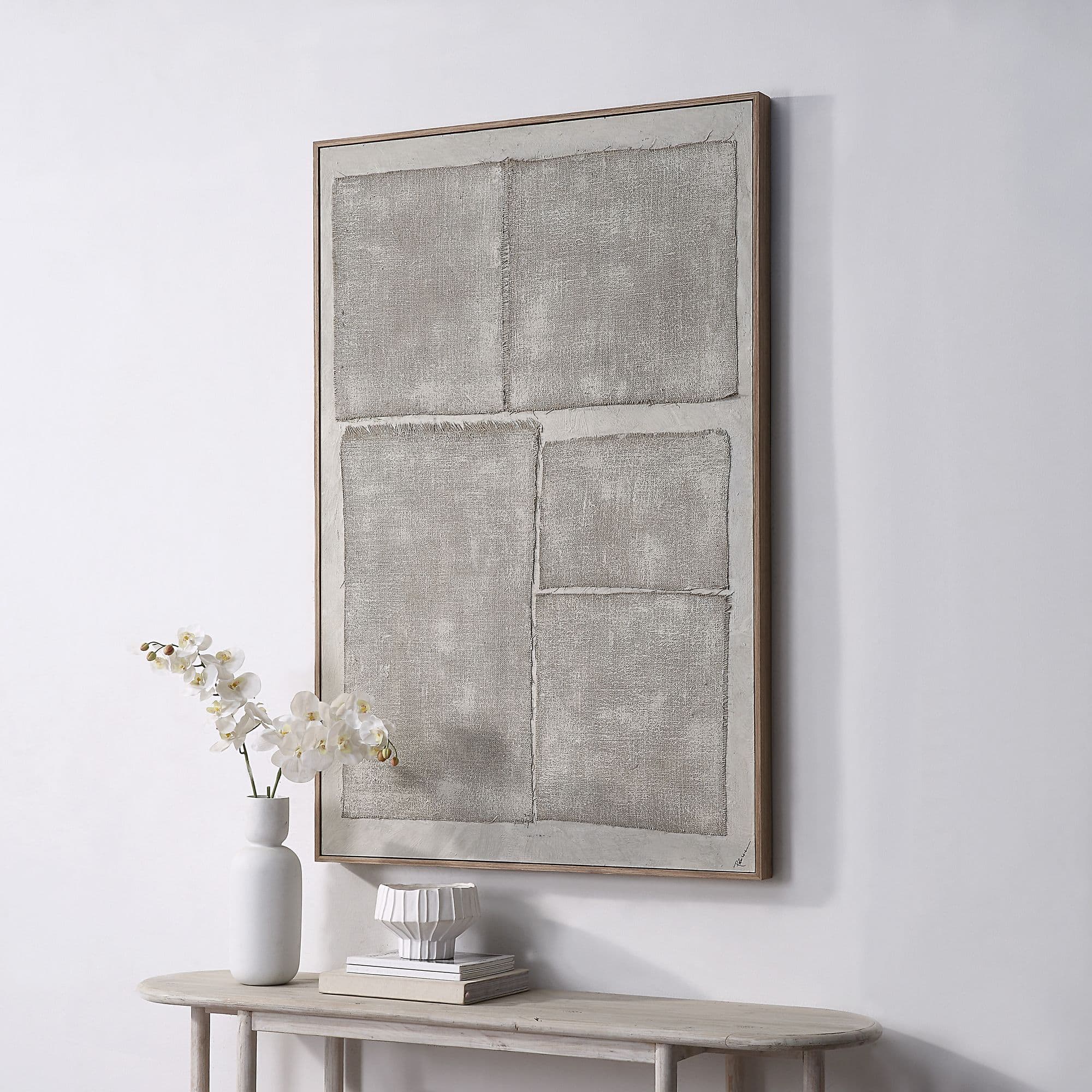 Bring a touch of elegance and sophistication to your home decor with the Picardy 60.3″ Wide Wall Art. Constructed with a strong PS core and finished with a wood veneer, it boasts a classic, timeless look that will seamlessly complement any interior design aesthetic. 100% hand-painted with exceptional craftsmanship, this unique piece delivers character and depth with its rich texture, beautifully complemented by burlap accents. Its versatile design allows for both vertical and horizontal hanging, making it a perfect addition to any wall space. Add an air of refinement to your home with this must-have statement piece.