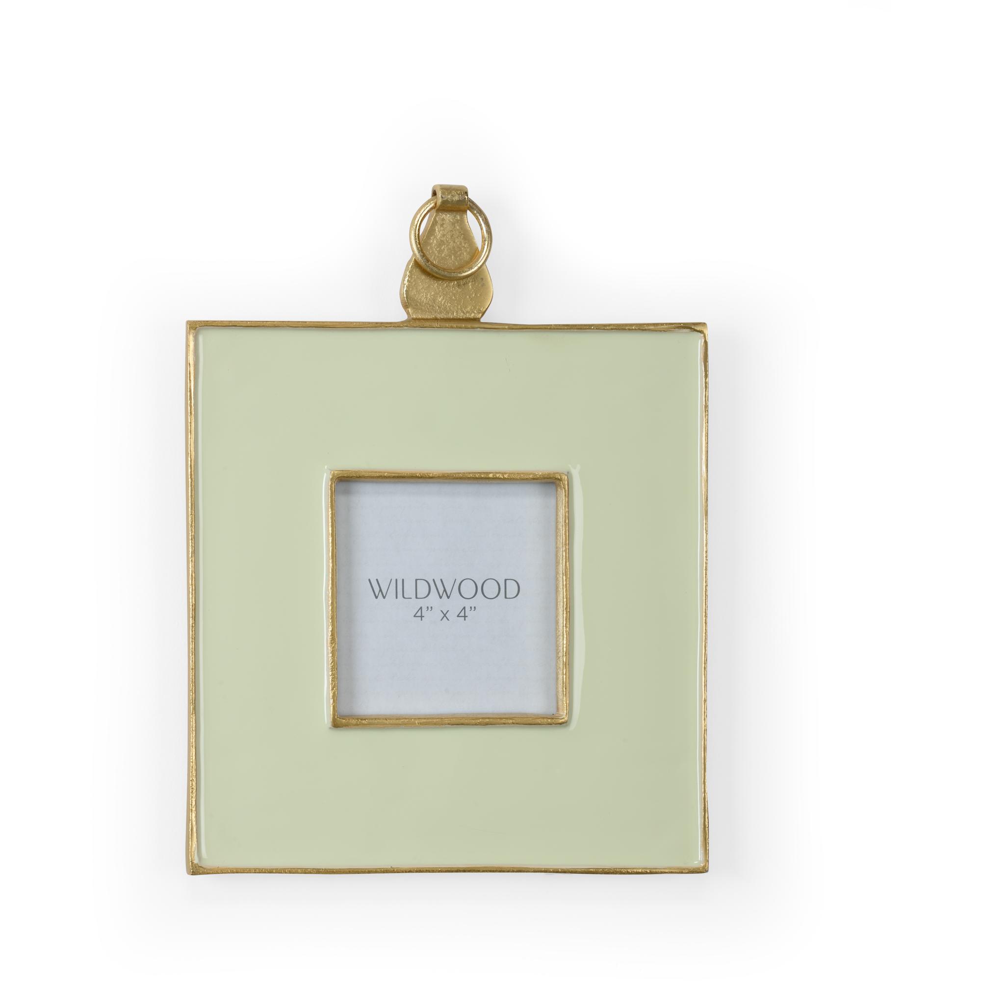 Pistachio enamel wall frame trimmed in textured gold, holds 4 x 4 photo.