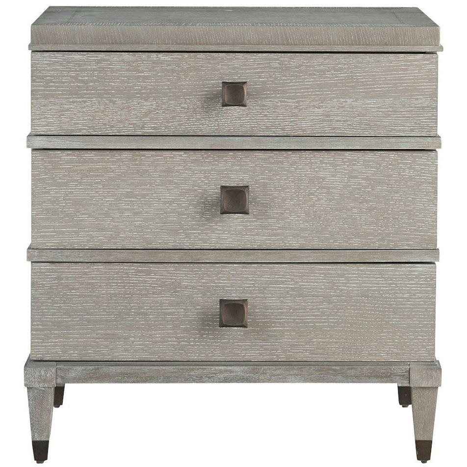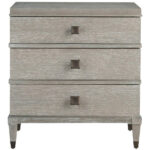 Introducing the Playlist Nightstand by Universal Furniture, a stunning addition to your bedroom with a modern twist. With three spacious drawers, this nightstand offers the perfect blend of style and functionality. The unique “Smoke on the Water” finish adds a touch of contemporary sophistication, creating a striking focal point in your space. Crafted from high-quality oak veneers with walnut inlay, it boasts both durability and beauty. The Playlist Nightstand not only brings a touch of artistry to your decor but also provides practical storage solutions. Elevate your bedroom’s aesthetic with this exceptional piece that effortlessly marries form and function.