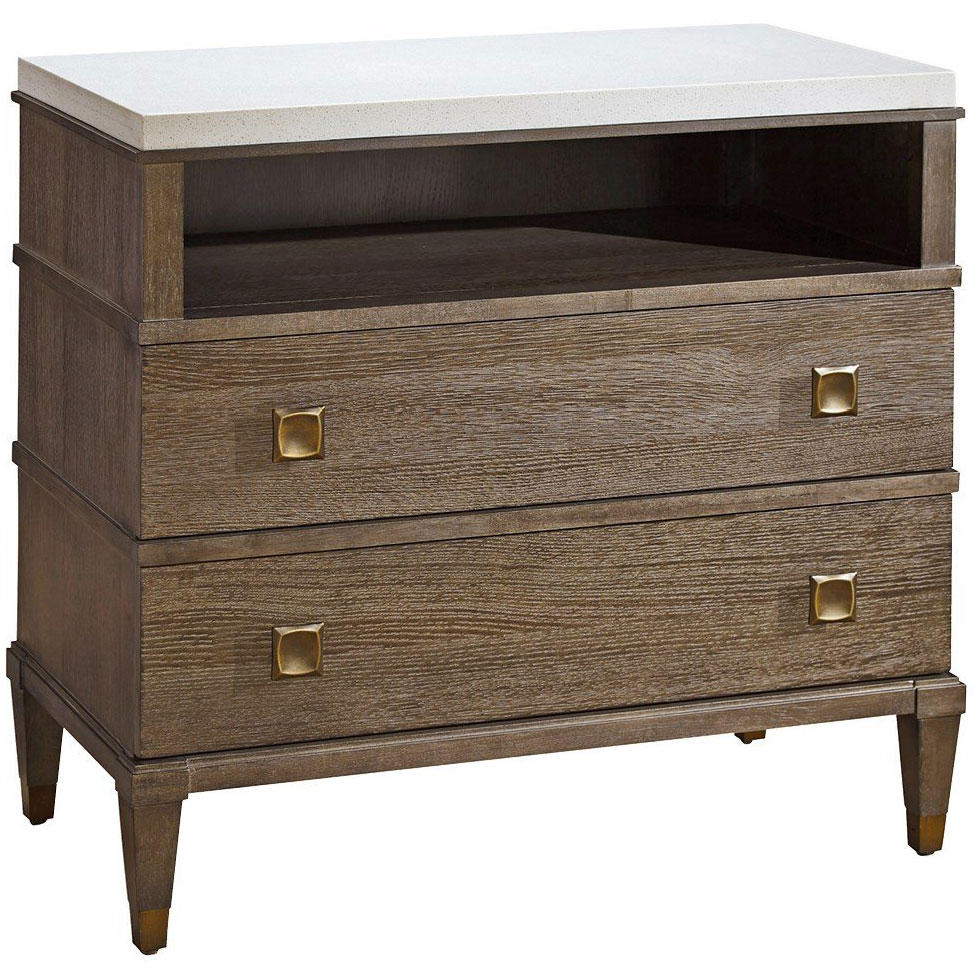 Introducing the Playlist Two Drawer Nightstand, a sophisticated addition to your bedroom decor. This version features a stone top that adds a touch of luxury and durability. The open storage area offers a stylish yet convenient space for your bedside essentials. Adorned in the inviting “Brown Eyed Girl” finish, this nightstand exudes timeless charm and warmth. Crafted to perfection, it offers not only two convenient drawers for storage but also an open storage area for quick access to your items. Elevate your bedroom with the Playlist Two Drawer Nightstand, a fusion of classic aesthetics and modern functionality, making it a must-have piece for your personal retreat.