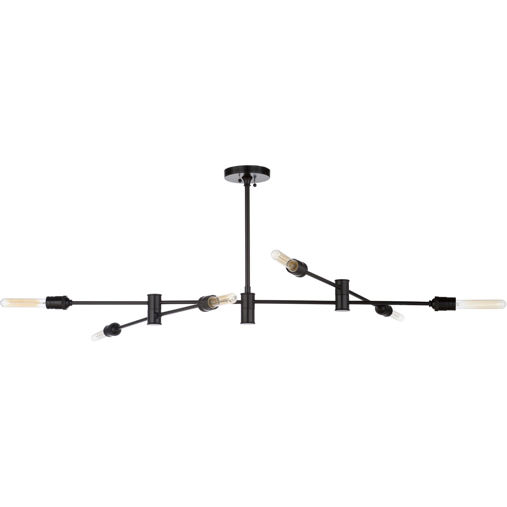 Articulating 6 light chandelier of modern industrial style adjustable extention rod from 6″ to 42″ comes with one 6″ rod and three 12″ rods (bulb not included)