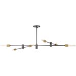 Articulating 6 light chandelier of modern industrial style, adjustable extention rod from 6″ to 42″, comes with one 6″ rod and three 12″ rods (bulb not included)