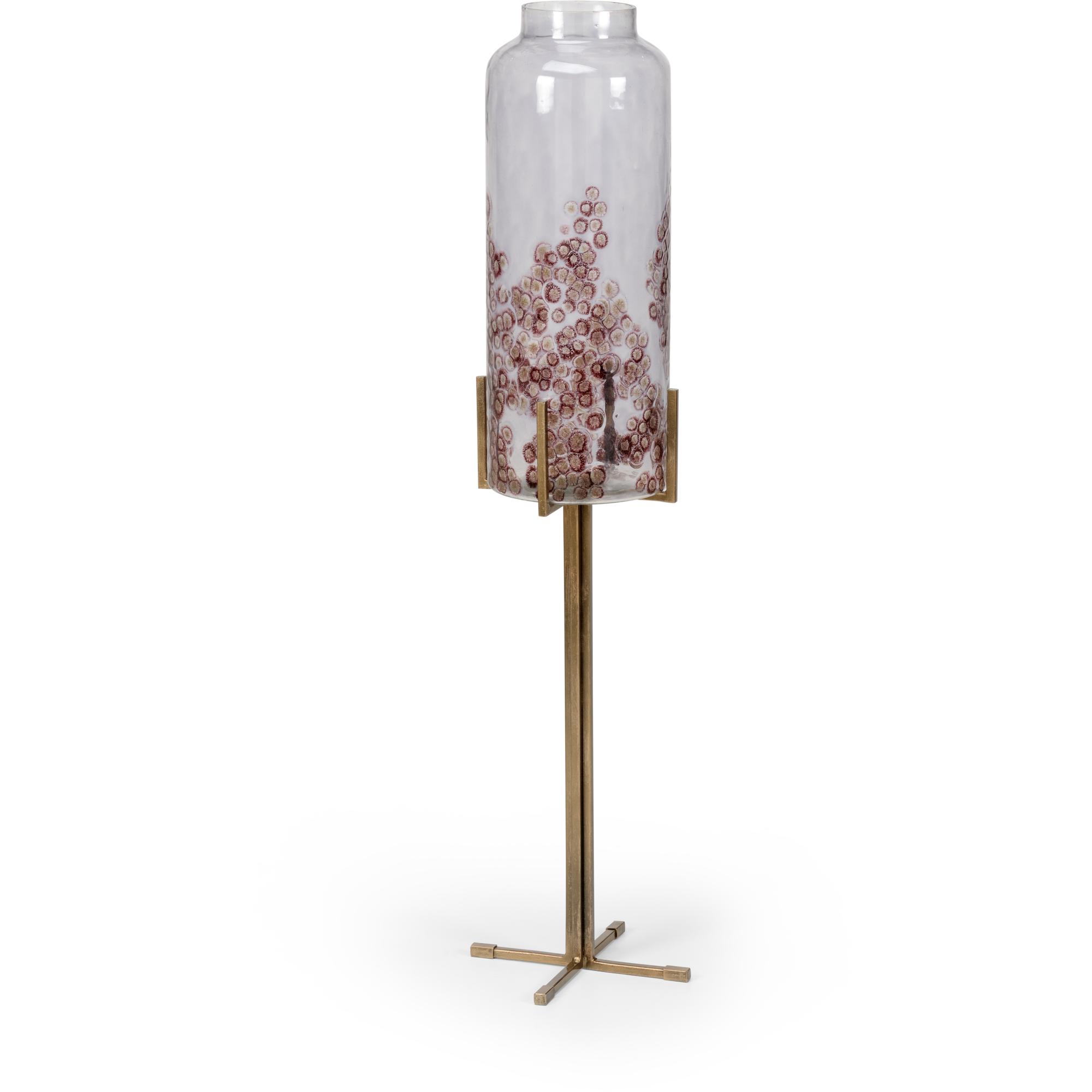 A romantic modern glass vase on an iron stand. The poets corner is best displayed with the 301940 and designed to make corners more interesting in all spaces.