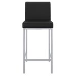 Contemporary counter height stool with faux leather and shiny chrome finishing. Combined, these two materials create a modern piece that will work will with any decor. The low back provides ample back support while adding to the minimalist appeal. Great for a casual breakfast bar or for the fancy basement bar where you can spend hours conversing with guests.