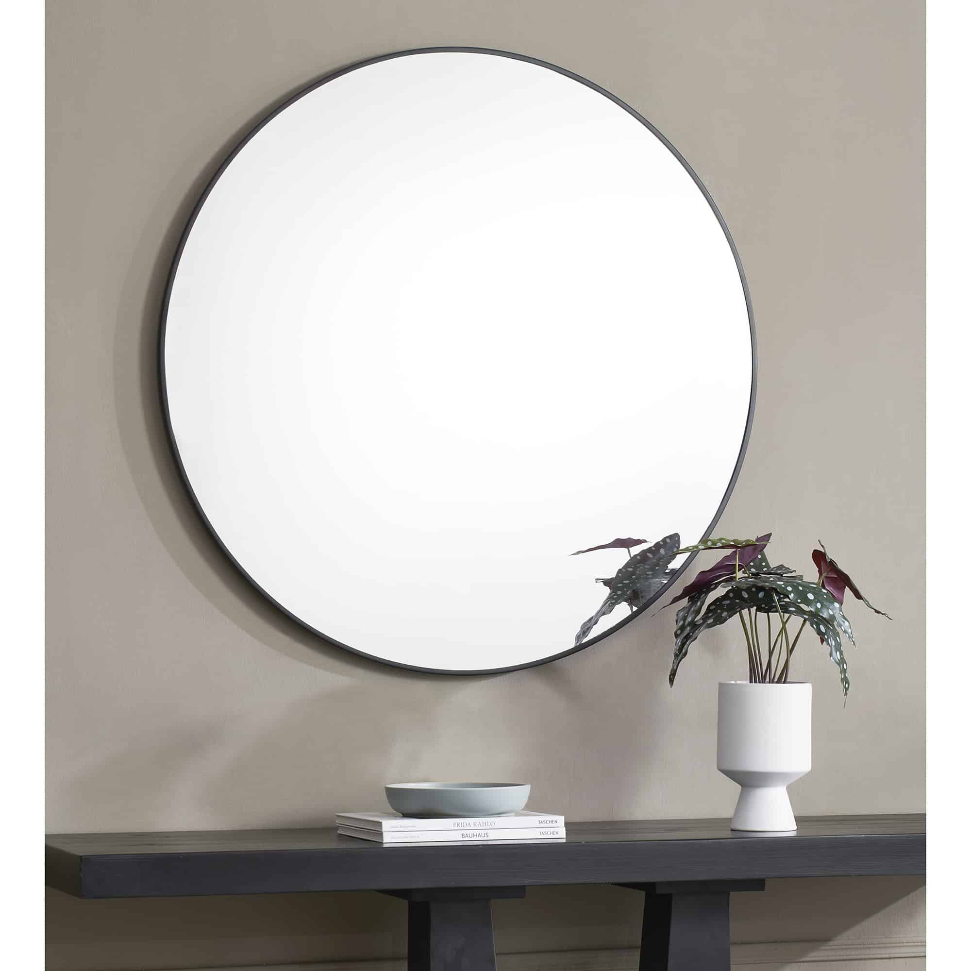 This mirror brings the charm and simplicity of a circle shape into the contemporary space. Paired with patterned and printed elements, it allows décor arrangements to stand out without taking the focus. With a 36-inch circumference, it has the opportunity to hang or rest above furnishings in the home.