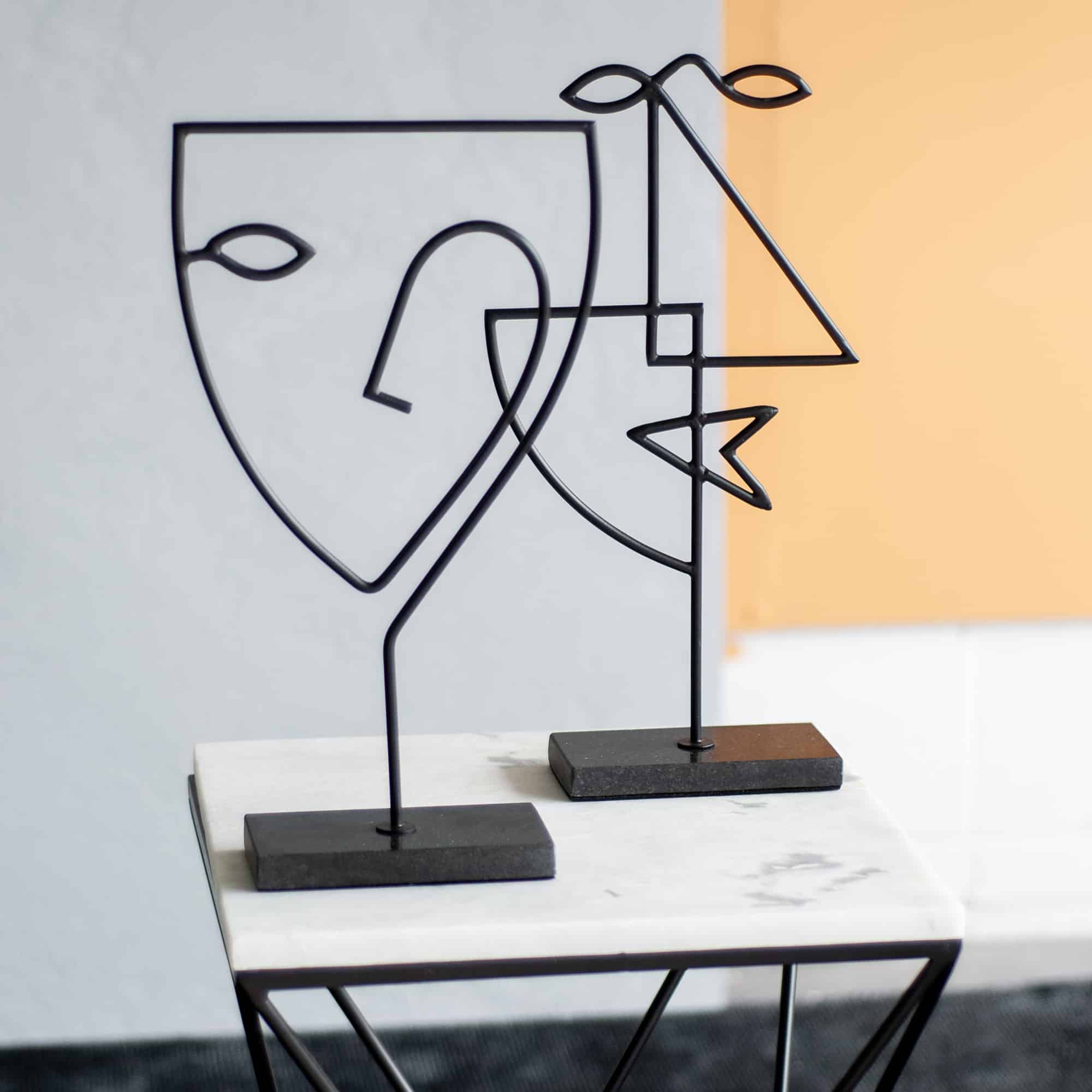 Dramatic influences are at the forefront of this pair of statues. Composed of powder-coated iron and granite with a matte black finish, the simple palette lets the beauty of their construction shine. The modern design will blend into any interior’s aesthetic.