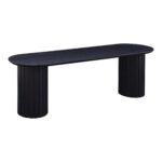 A convergence of shape and form, the Povera dining bench will serve as the pillar of your dining room. Povera features two large columns supporting an expansive tabletop, their gentle ribbing reminiscent of ripples and waves. With a rich black finish featuring a soft purple undertone that allows the natural wood grain of the Acacia wood to show through, this dining bench uses simple geometry and natural materials to form an enchanting experience. Offering bold statement appeal, Povera incorporates the elegance of ratio into your home.