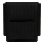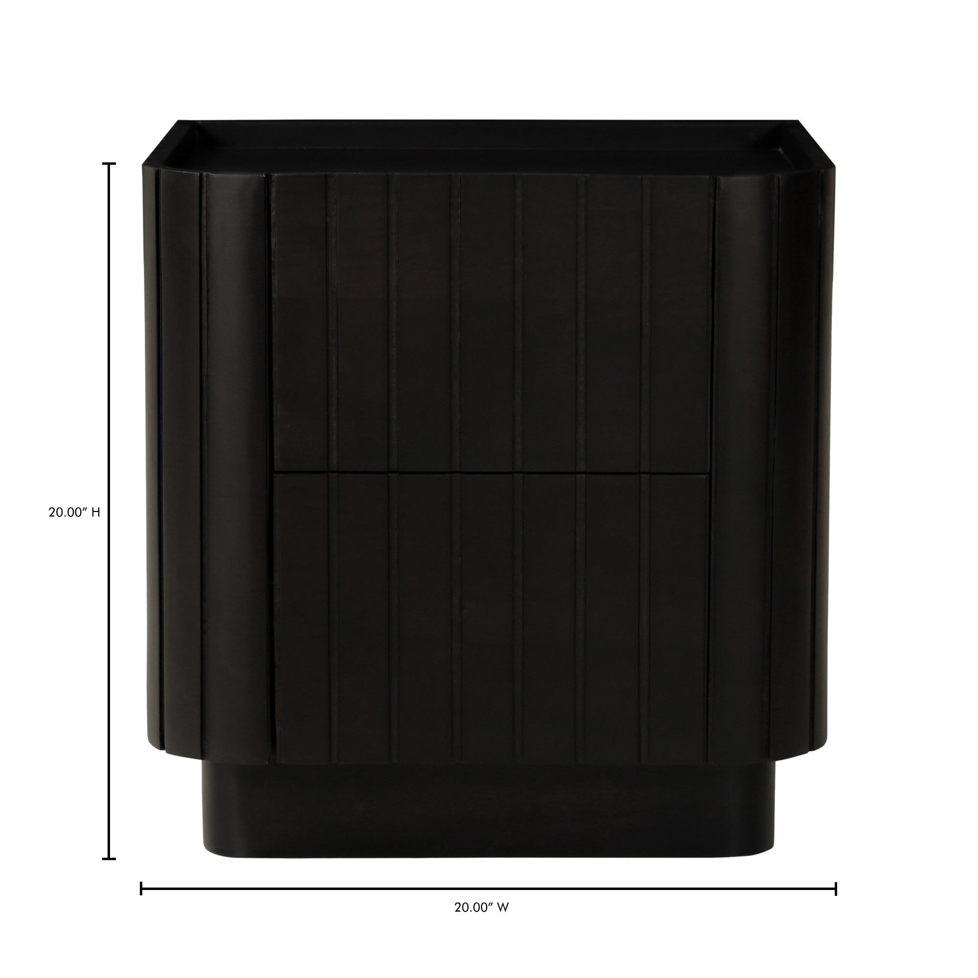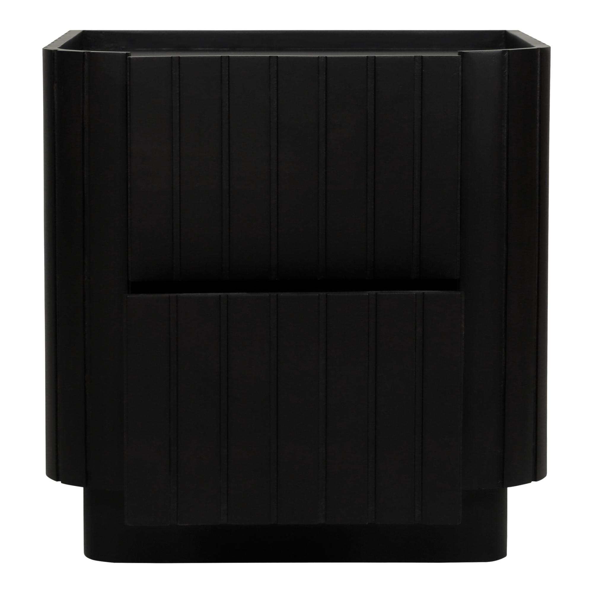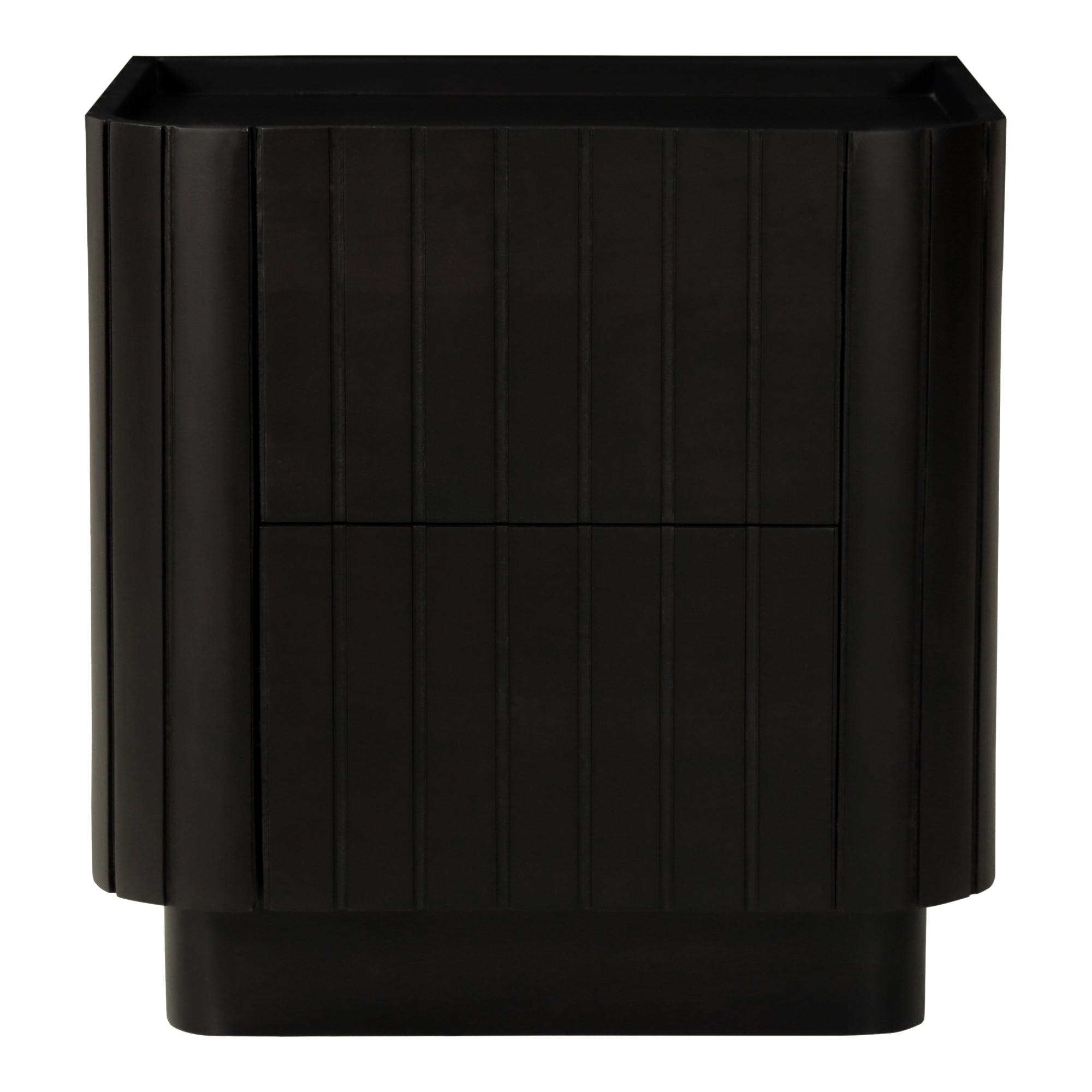 The Povera nightstand balances detail and form offering bold statement appeal and ample storage. This piece anchors the bedroom with its Acacia façade’s gentle ribbing reminiscent of ripples and waves adding texture and warmth. A rich black finish with a soft purple undertone allows the natural wood grain to show through. Naturally beautiful with an impactful silhouette, two soft close drawers open with side mount ball bearing glides.