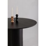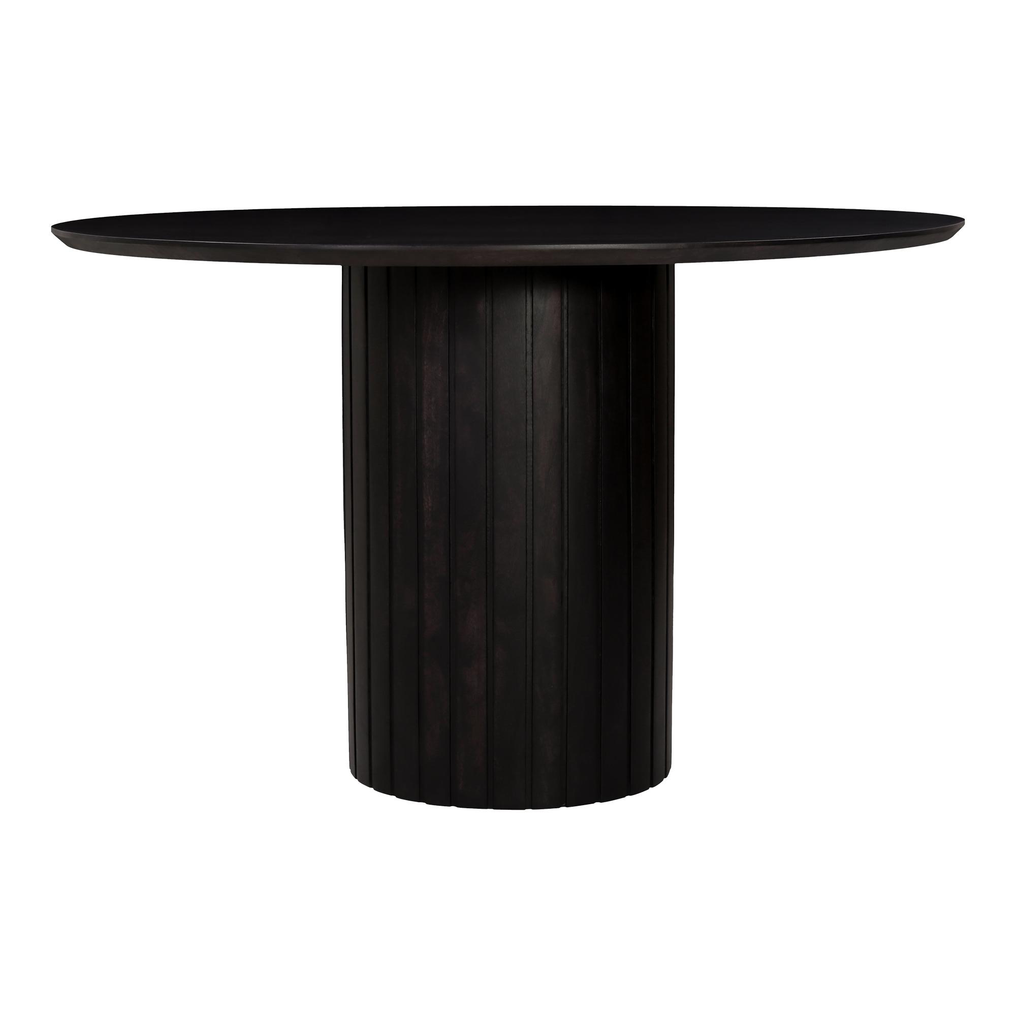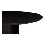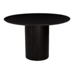 A meeting of shape and form, the Povera dining table will serve as the pillar of your dining area. Povera features one large column supporting an expansive round tabletop, its gentle ribbing reminiscent of ripples and waves. With a rich black finish featuring a soft purple undertone that allows the natural wood grain of the Acacia wood to show through, this dining table uses simple geometry and natural materials that offer bold statement appeal.