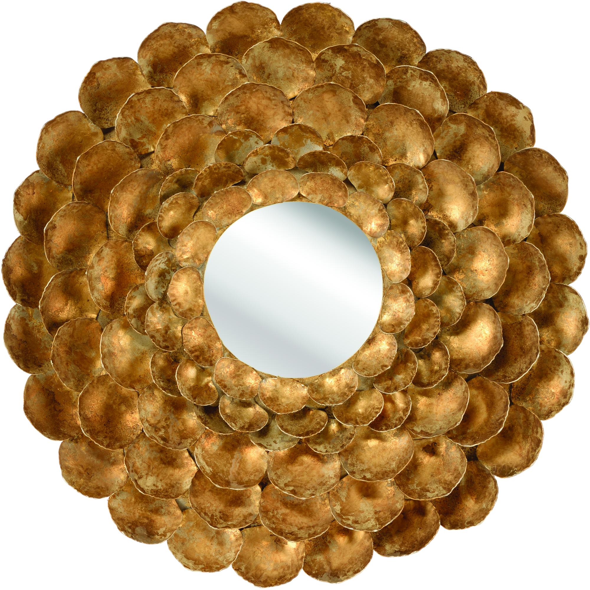 Bright and full of personality, the Promenea Mirror features layers of petals with an aged gold leaf finish around a clear mirror. Hand crafted in Italy; this lovely decorative mirror shines in any room. Other sizes are available.