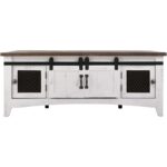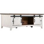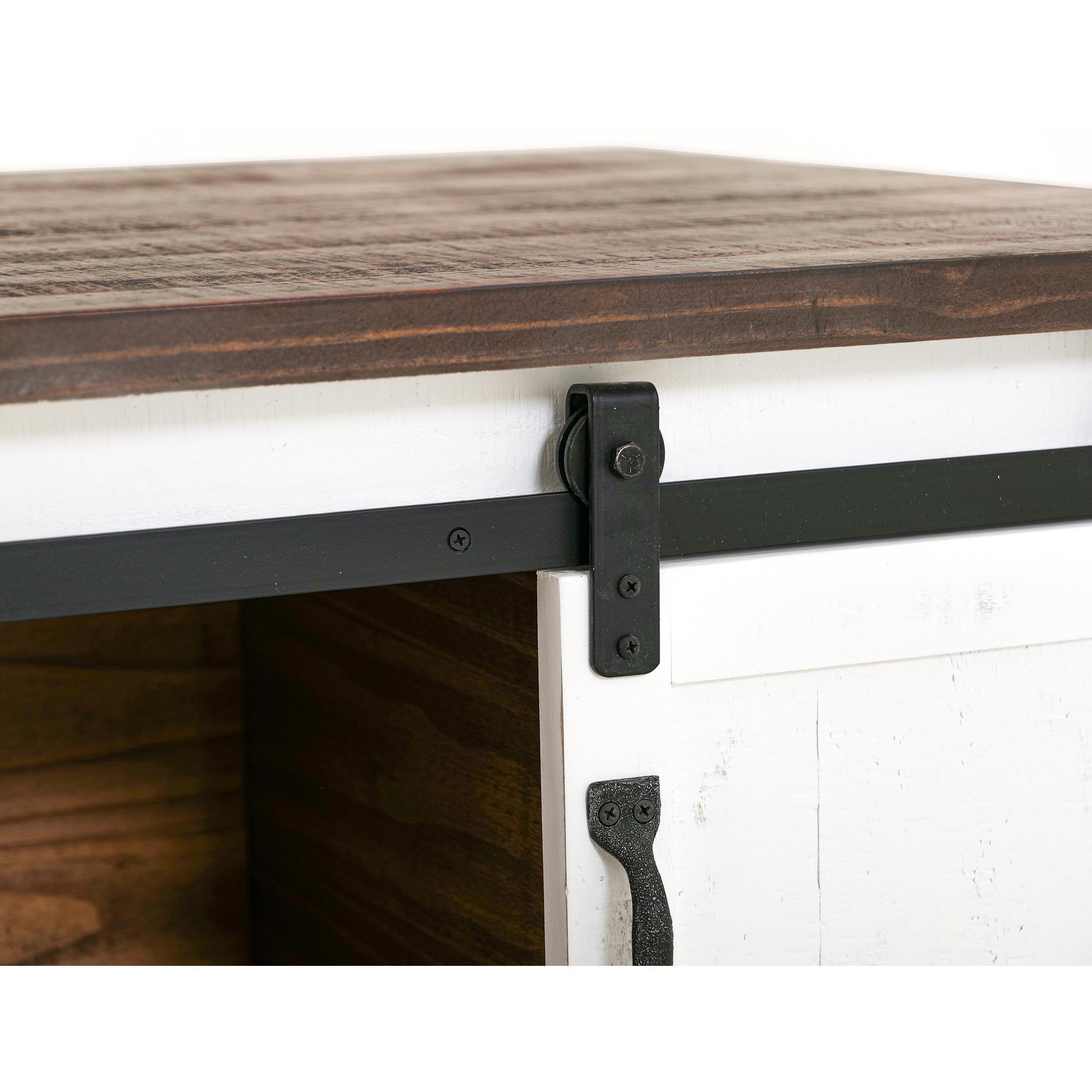 - Two sliding barn-style doors offer convenience and rustic appeal.