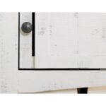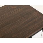 - Two-tone, multi-step lacquer finish with a weathered white effect on hand-distressed wood and brown tops.