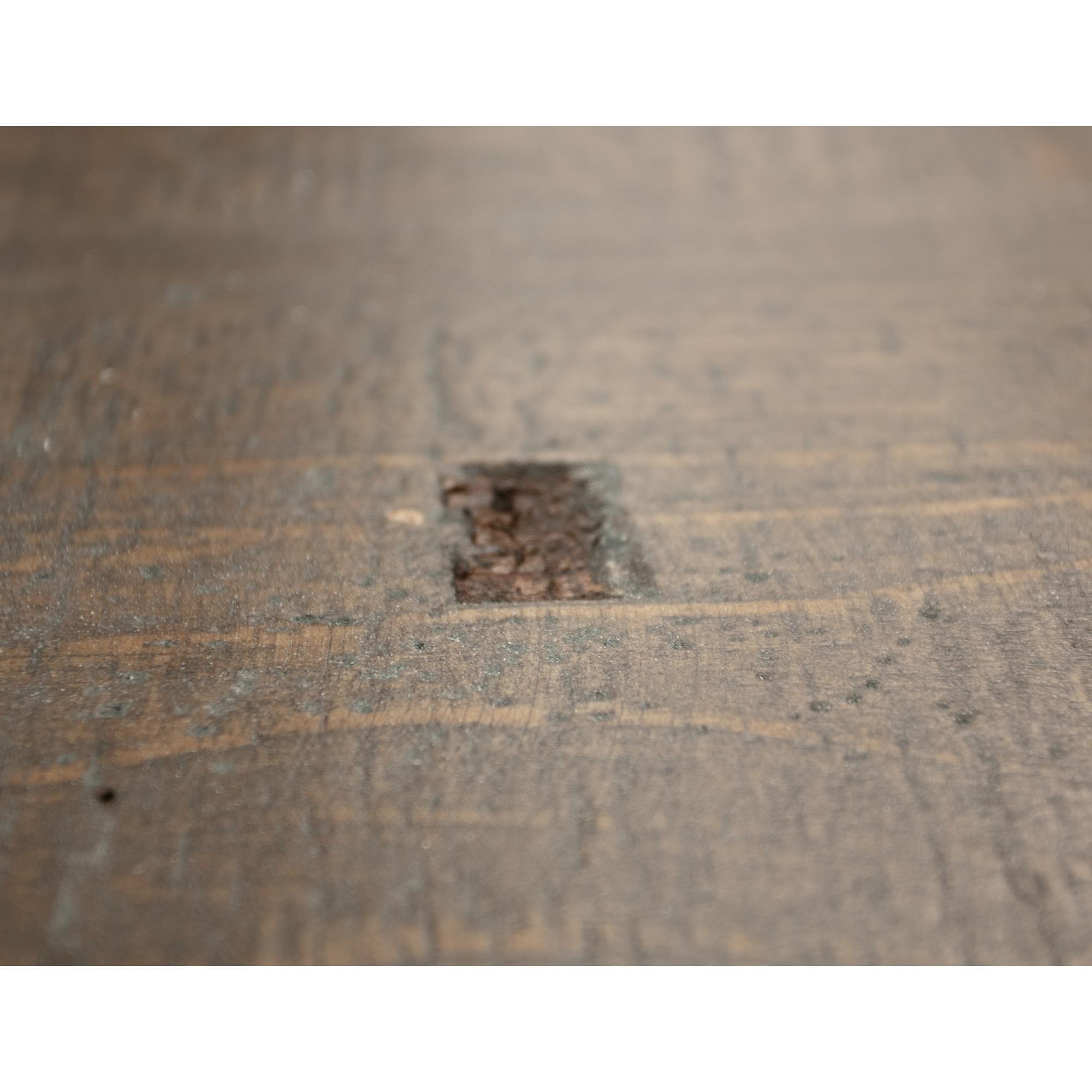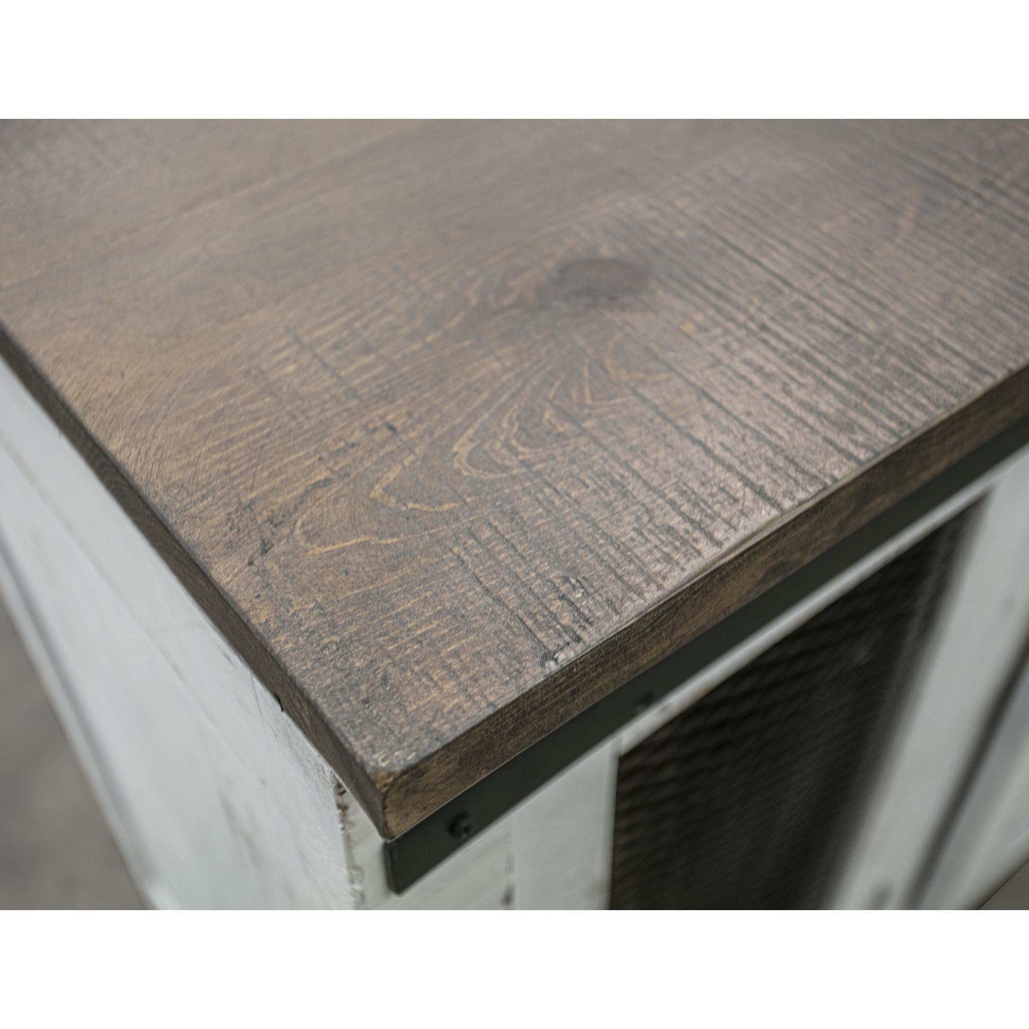 - Two-tone, multi-step lacquer finish with a weathered white effect on hand-distressed wood and brown tops.