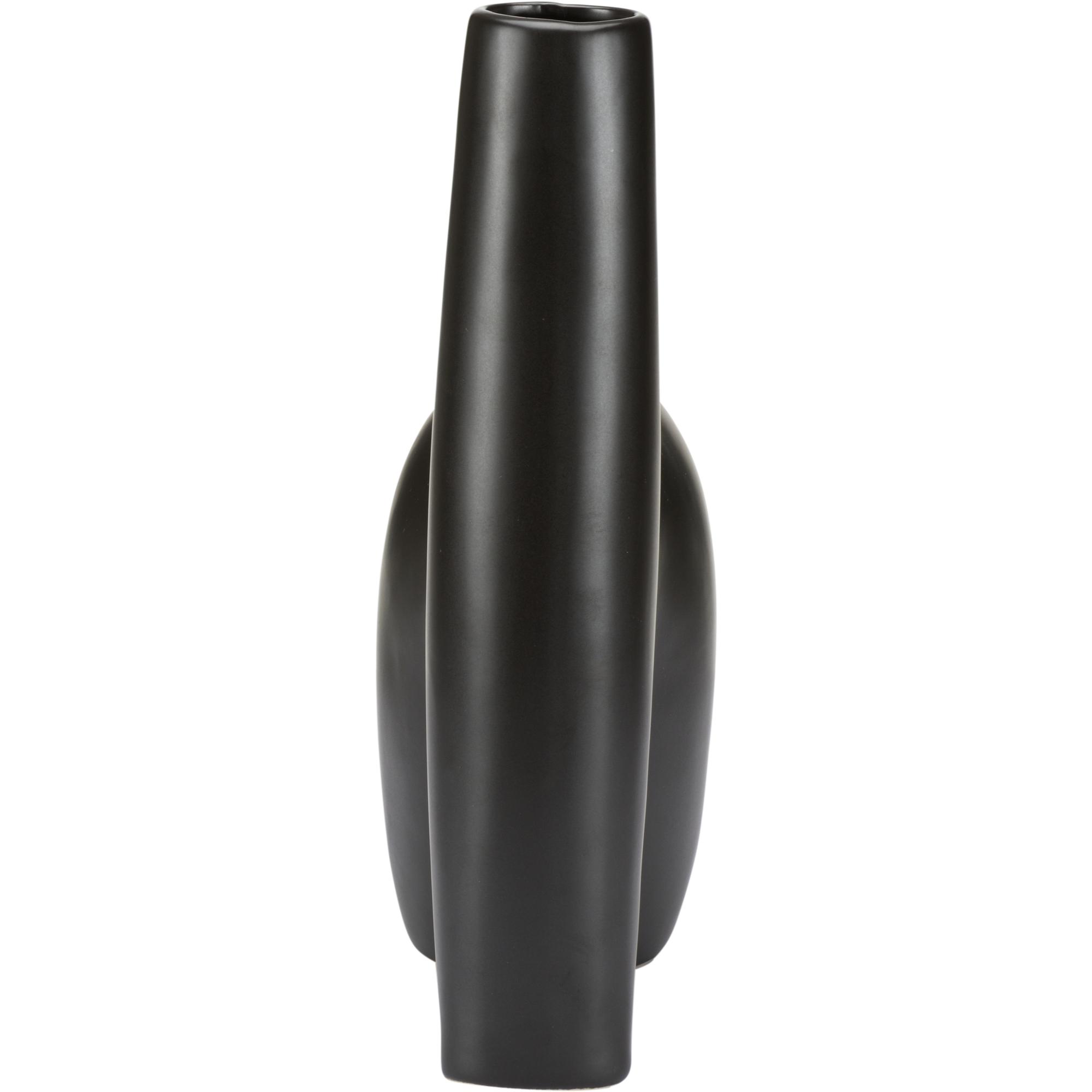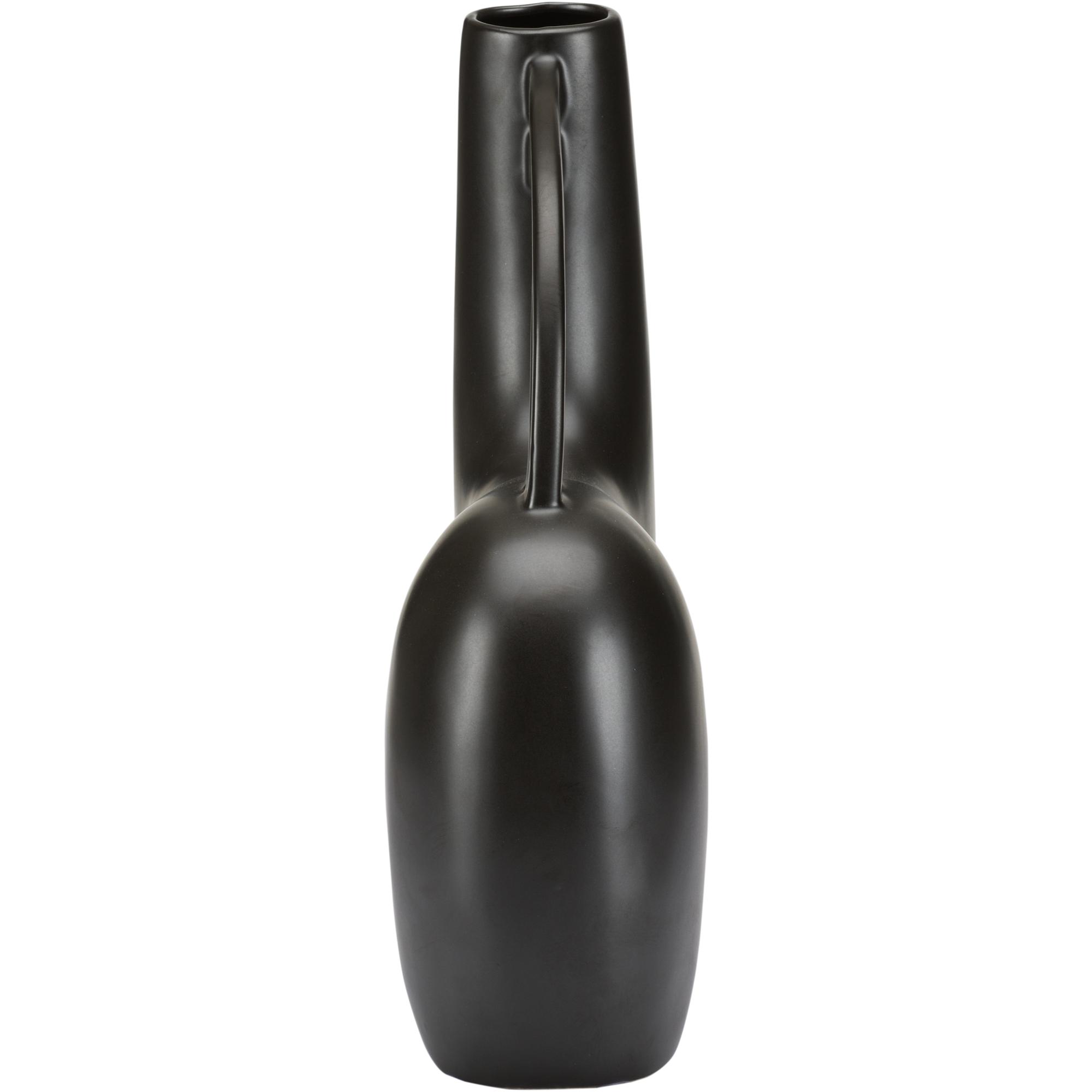 Reminiscent of the black sandy beaches of Punalu’u, this accent vase is ideal for tabletops and bookshelves in any modern home or office. The black glazed ceramic has a whimsical silhouette with a sandy texture. Group with other Punalu’u vases for cohesion in your decor.